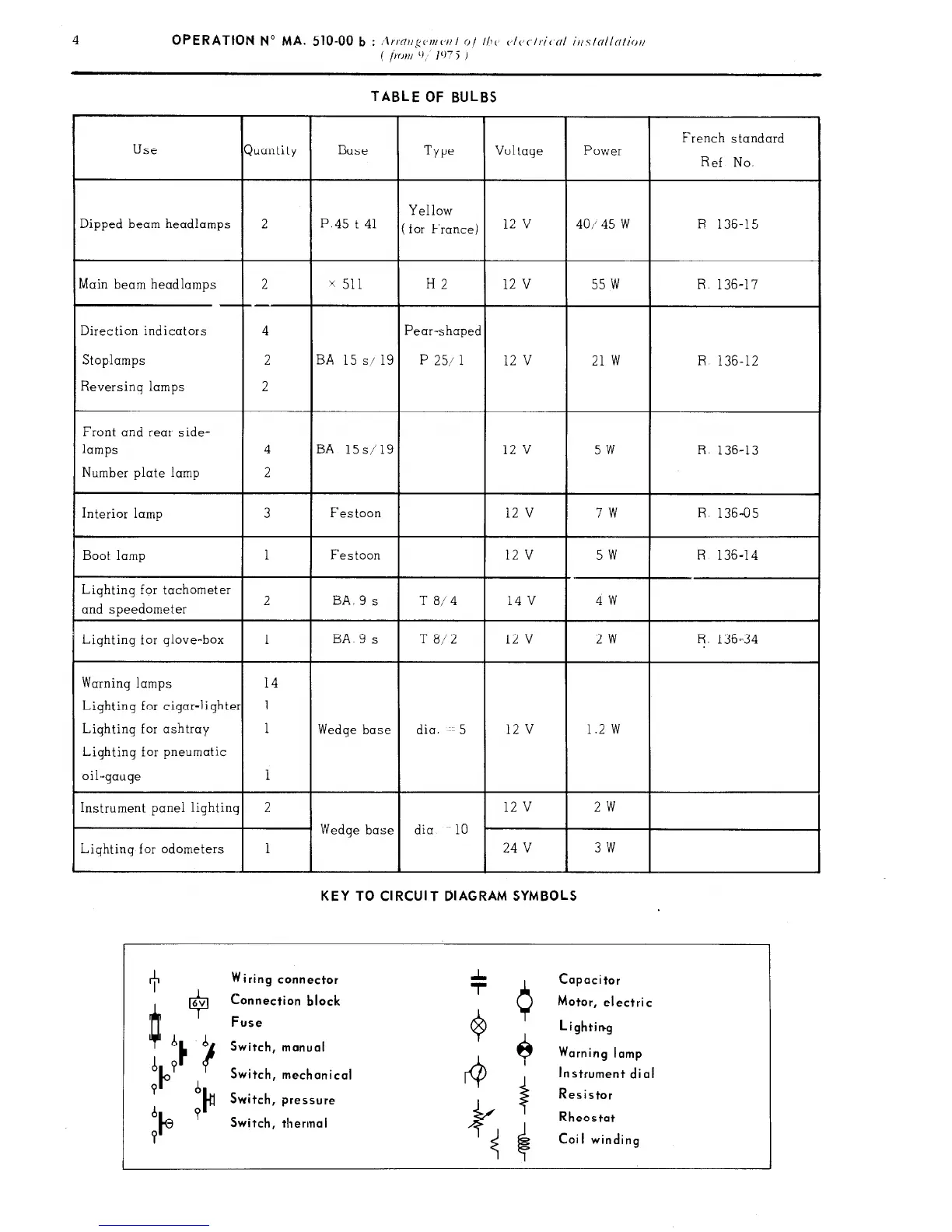 KEY TO CIRCUIT DIAGRAM SYMBOLS