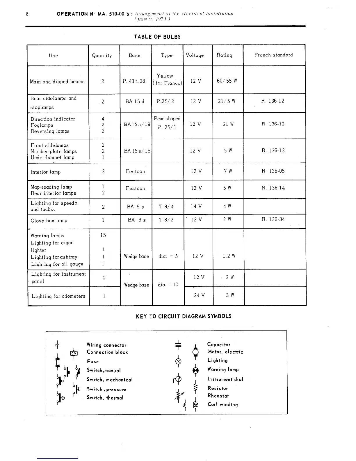 KEY TO CIRCUIT DIAGRAM SYMBOLS