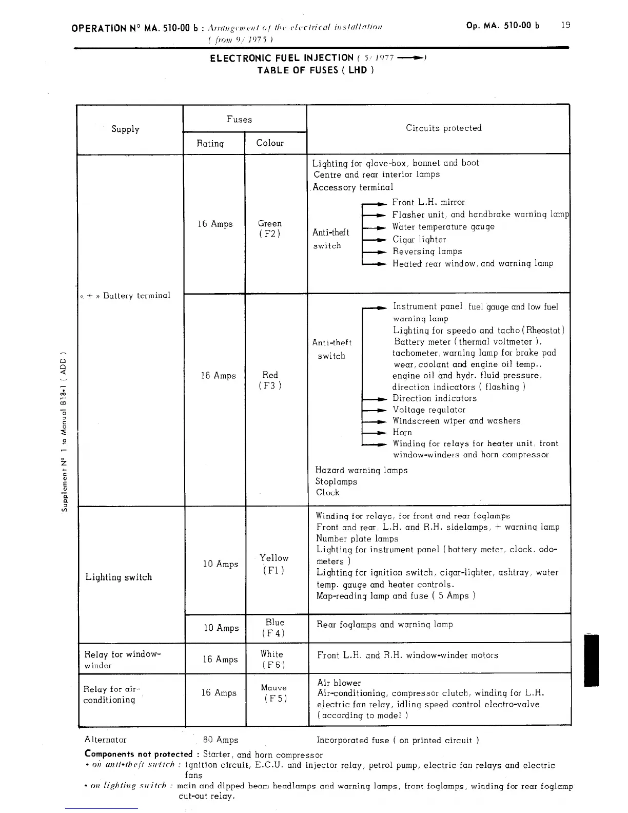 TABLE OF FUSES ( LHD )