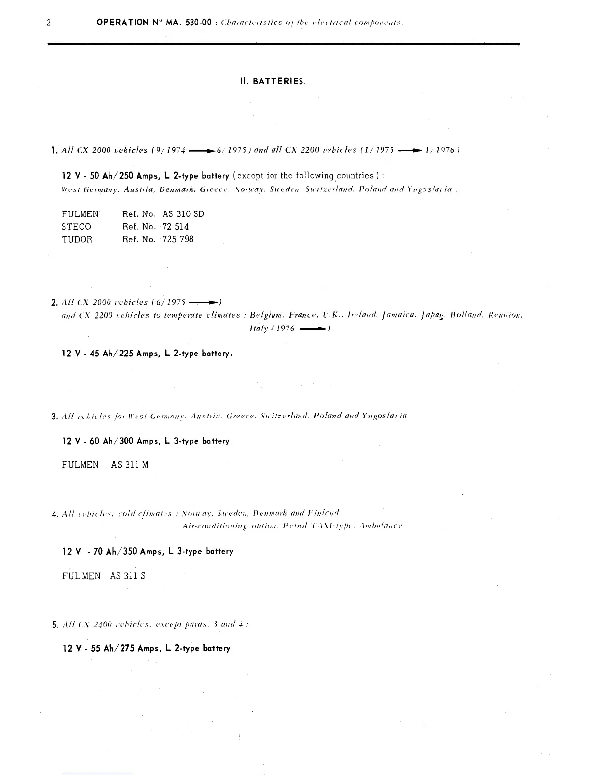 1. All CX 2000 vehicles (9/ 1974 s~-6, 1975) and all CX 2200 rwbirles (I/ 1975 - I/ 1076)