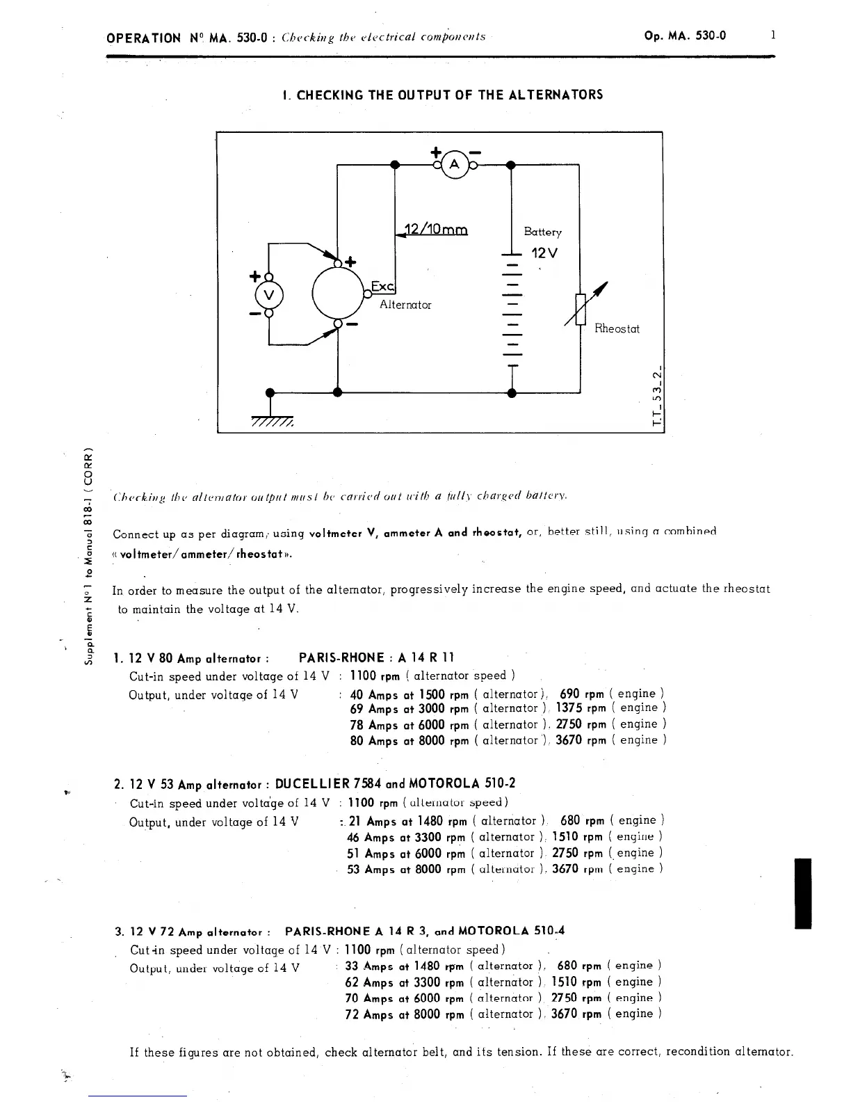 I. CHECKING THE OUTPUT OF THE ALTERNATORS