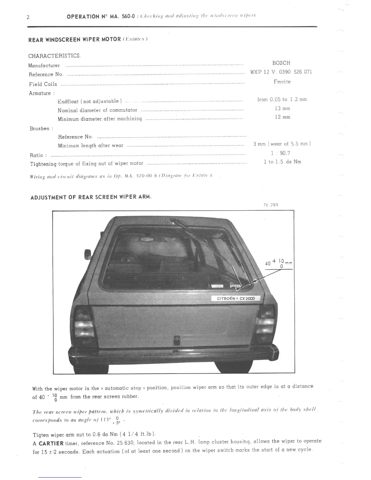 timer, reference No. 25 630, located in the IMT L.H. lamp cluster housihg, allows the wiper to operate