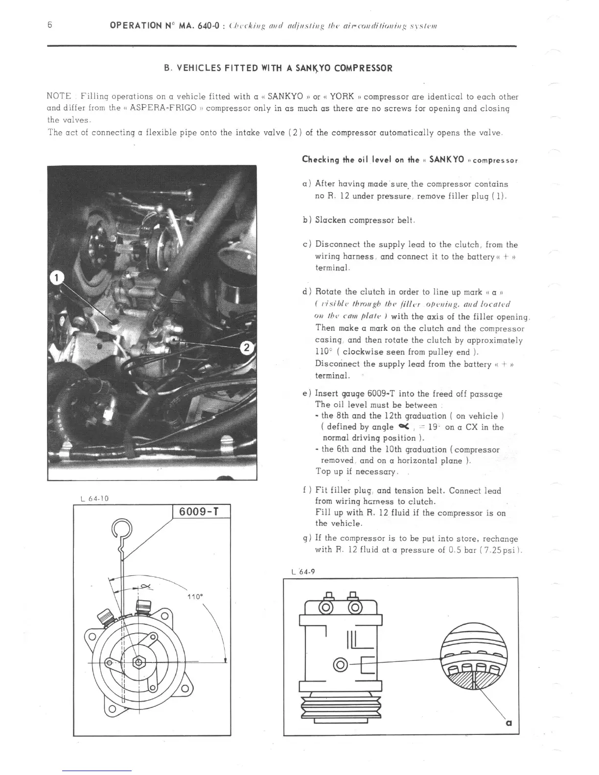 NOTE Filling operations on CI vehicle fitted with a </ SANKYO )a or SC YORK 1) compressor are identical to each other