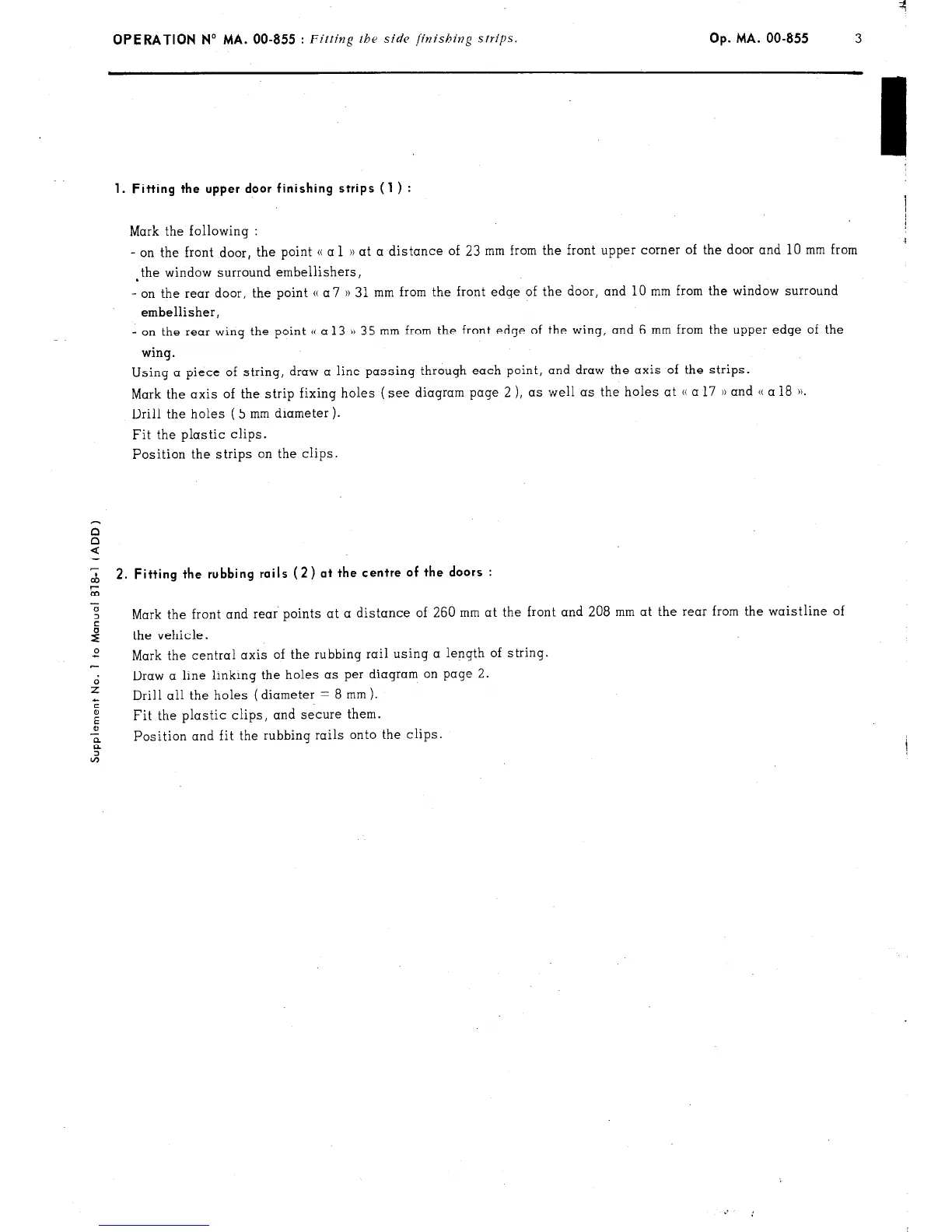 Mark the axis of the strip fixing holes (see diagram page 2 ), as well as the holes at (( a 17 )) and CC a 18 )).