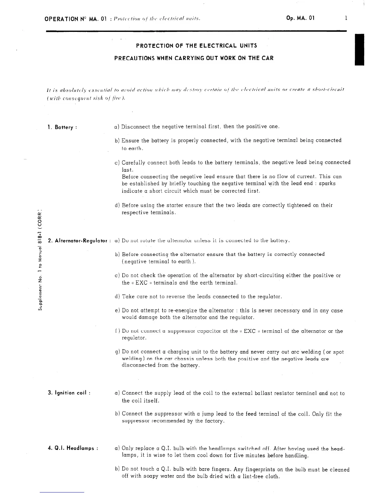 e) Do not attempt to re-energize the alternator : this is never necessary and in any case