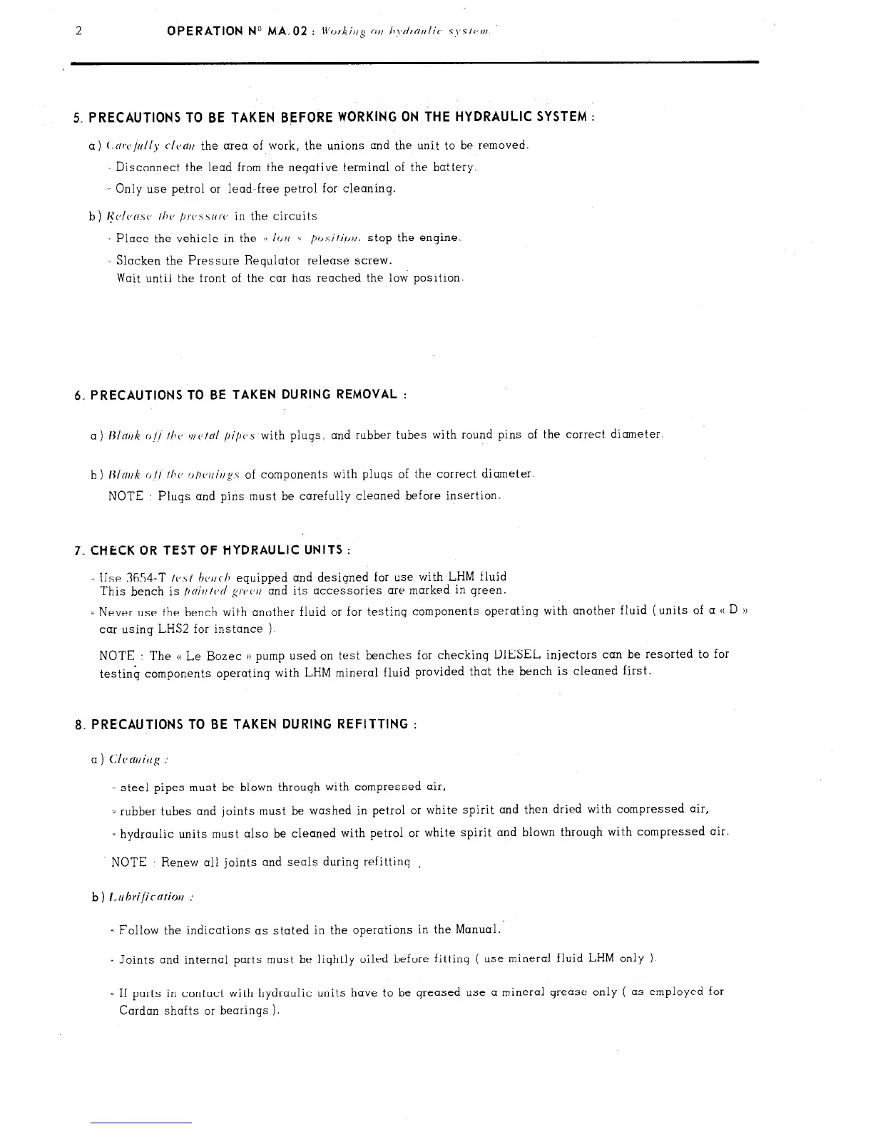 5. PRECAUTIONS TO BE TAKEN BEFORE WORKING ON THE HYDRAULIC SYSTEM :