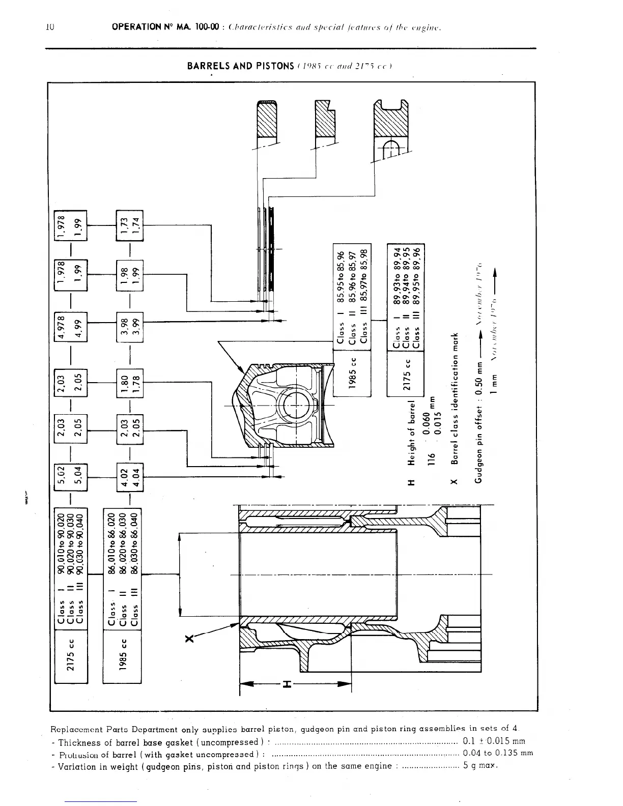 - Variation in weight ( gudgeon pins, piston and piston rings ) on the same engine :