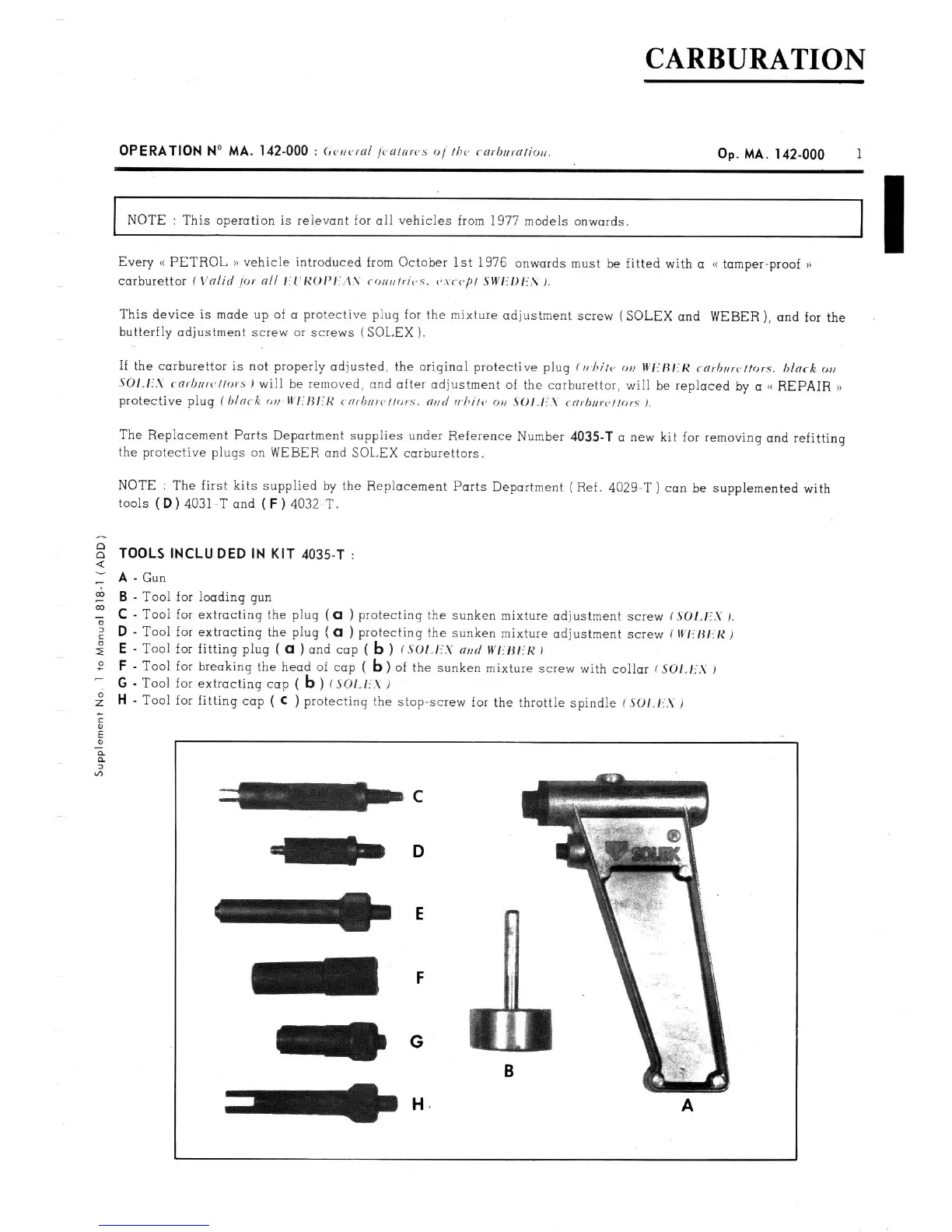 NOTE : This operation is relevant for all vehicles lrom 1977 models onwards.