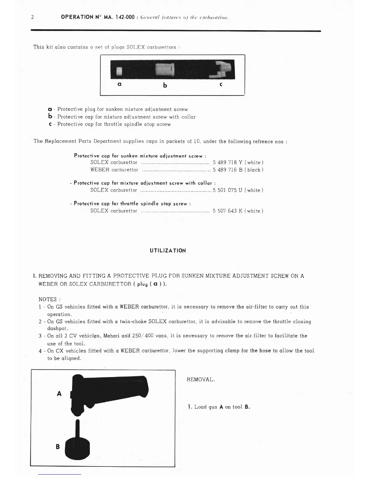3 - On all 2 CV vehicles, Mehari and 250/400 vans, it is necessary to ~emcwe the air filter to facilitate the