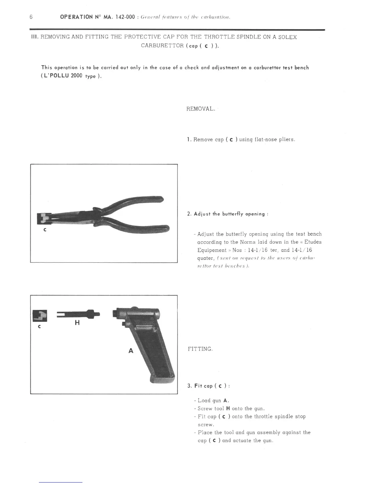 III. REMOVING AND FITTING THE PROTECTIVE CAP FOR THE THROTTLE SPINDLE ON A SOLEX