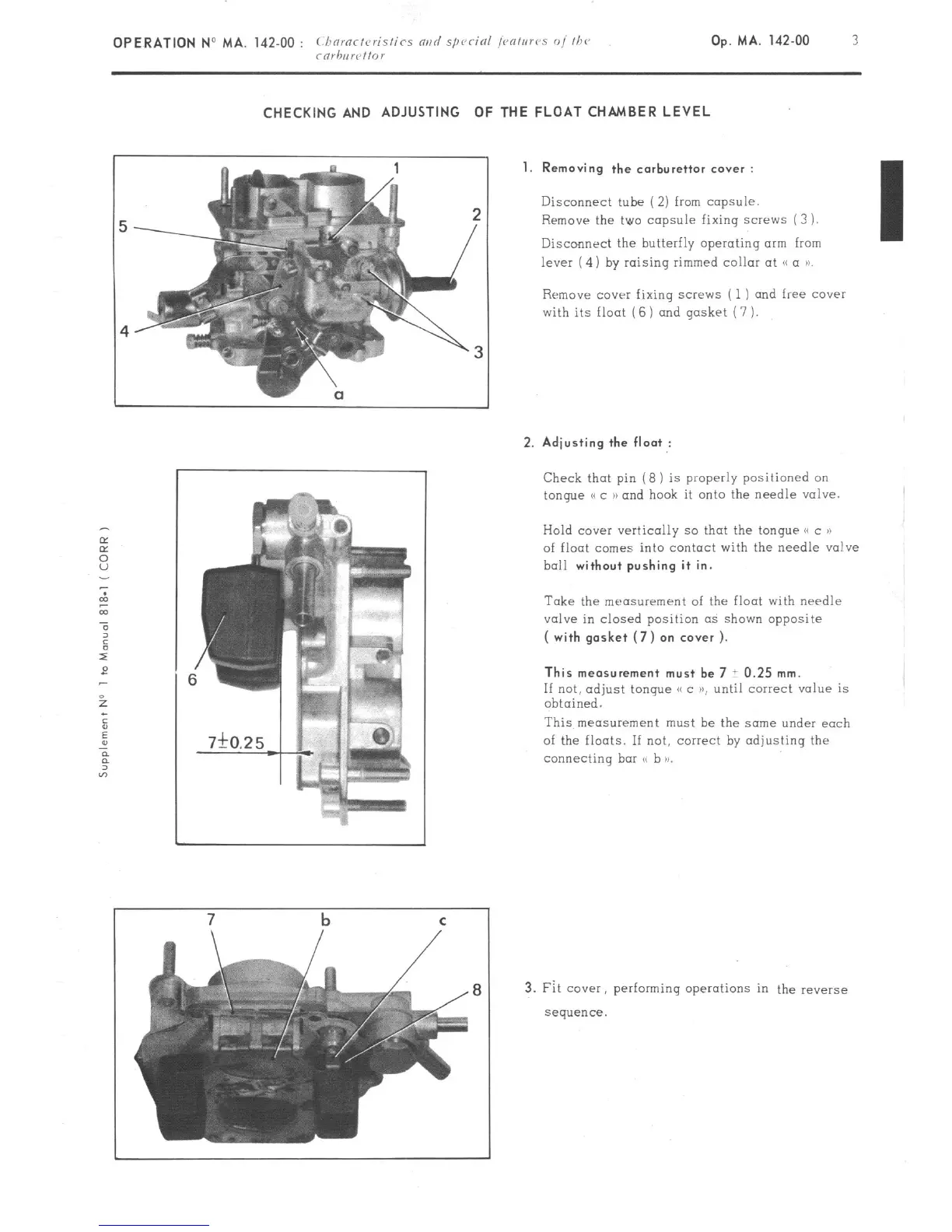 CHECKING AND ADJUSTING OF THE FLOAT CHAMBER LEVEL