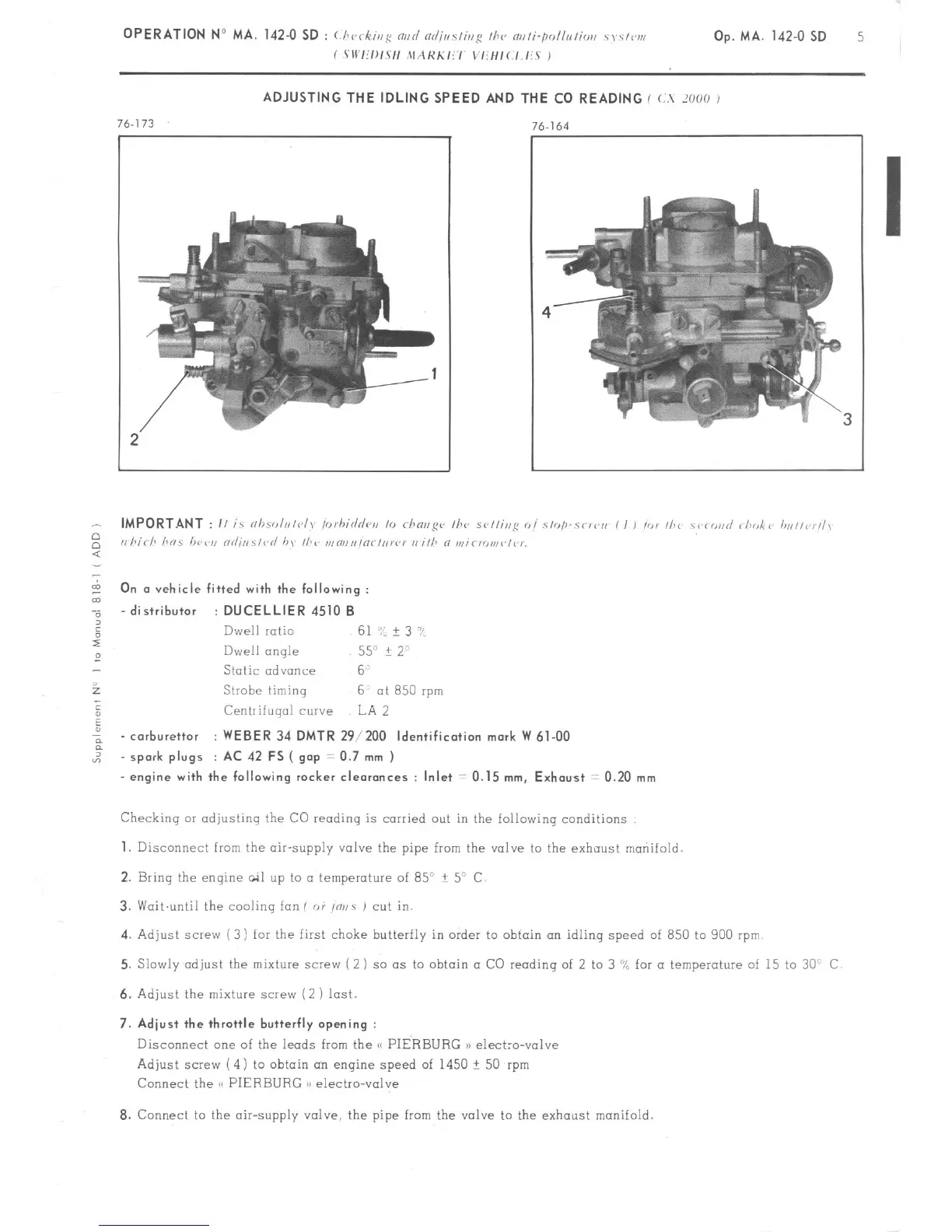 4. Adjust screw ( 3) for the first choke butterfly in order to obtain on idling speed of 850 to 900 rpm