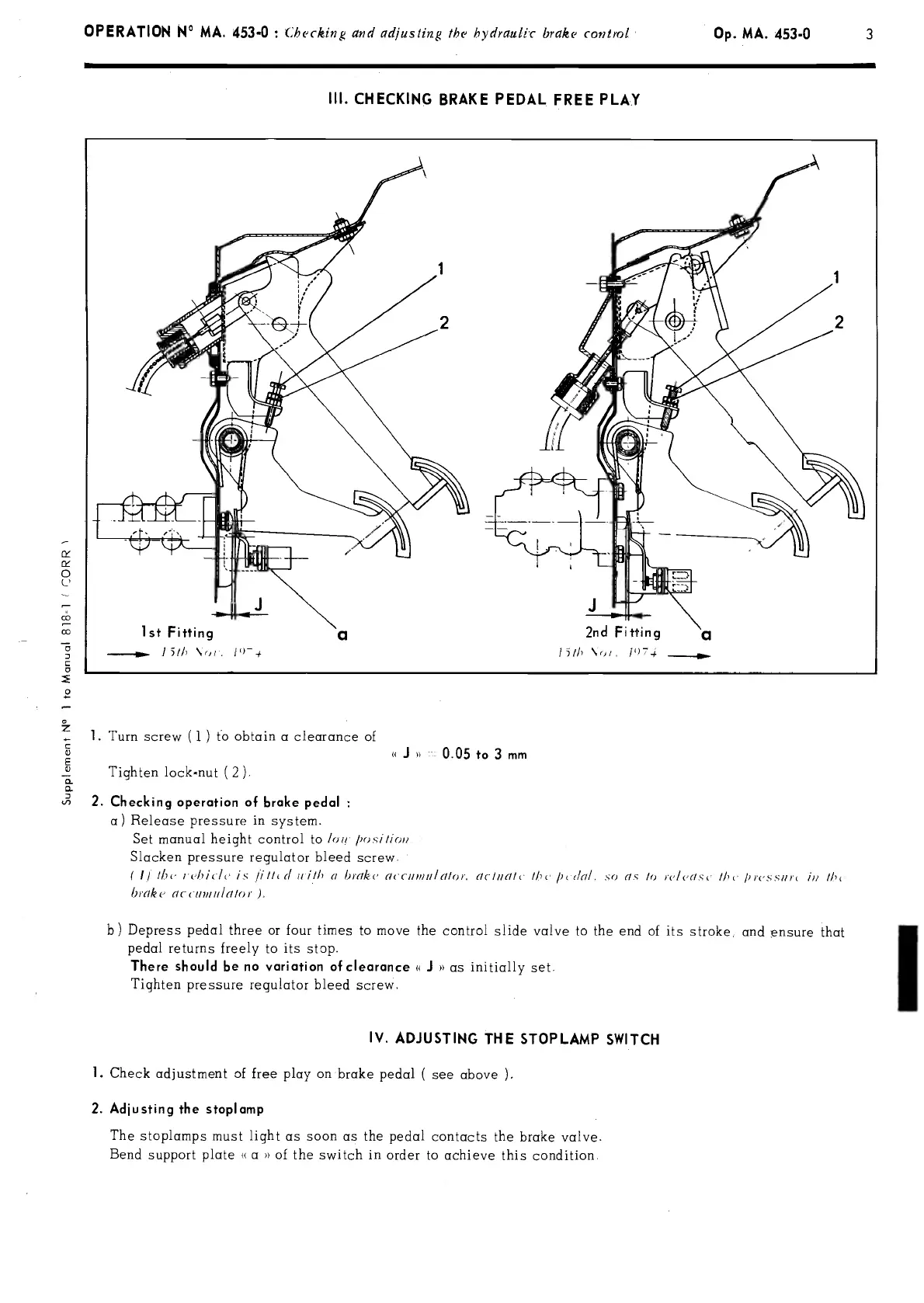 CITROEN CX - Pedal Free Play; Stop Lamp Switch
