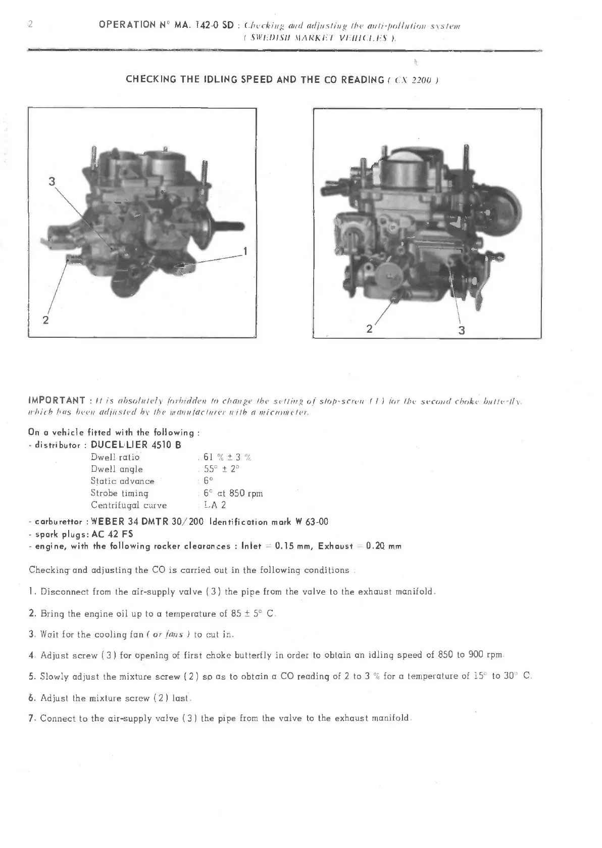 engine, with the following rocker clearances Inlet 0.15 mm,