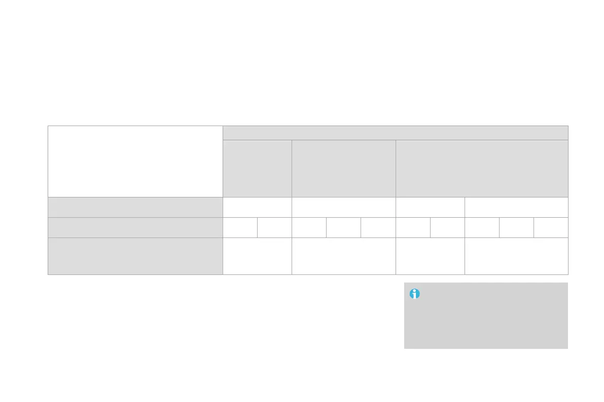 In accordance with European Regulations, this table indicates the options for installing ISOFIX child seats on seats in the vehicle fitted with ISOFIX