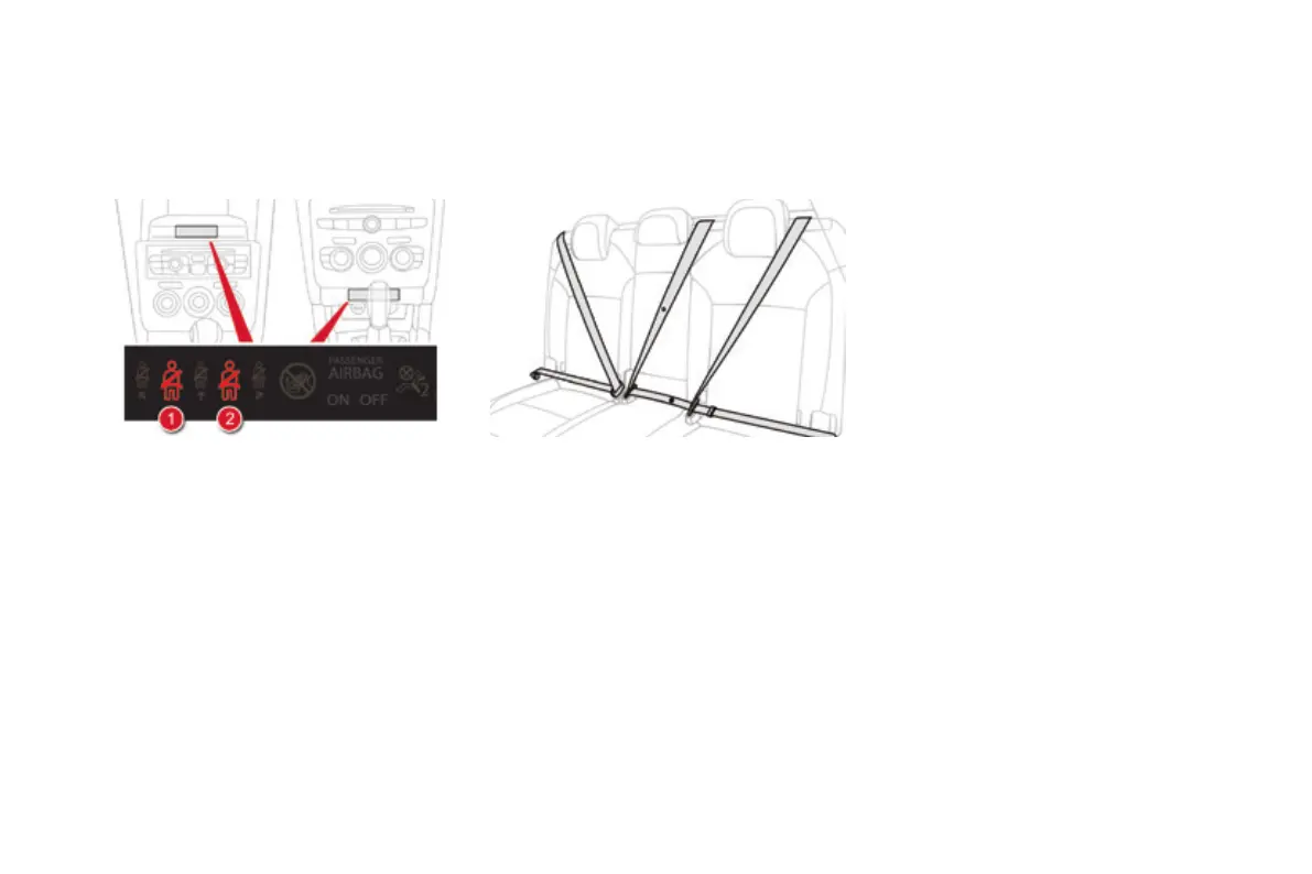 on in red on the seat belt and passenger's front