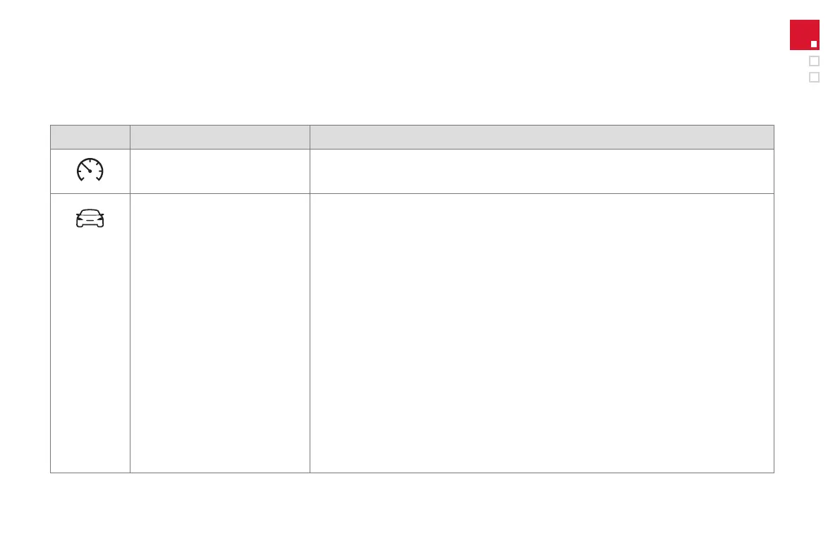 Speed settings Memorisation of speeds for use with the speed limiter or cruise control.