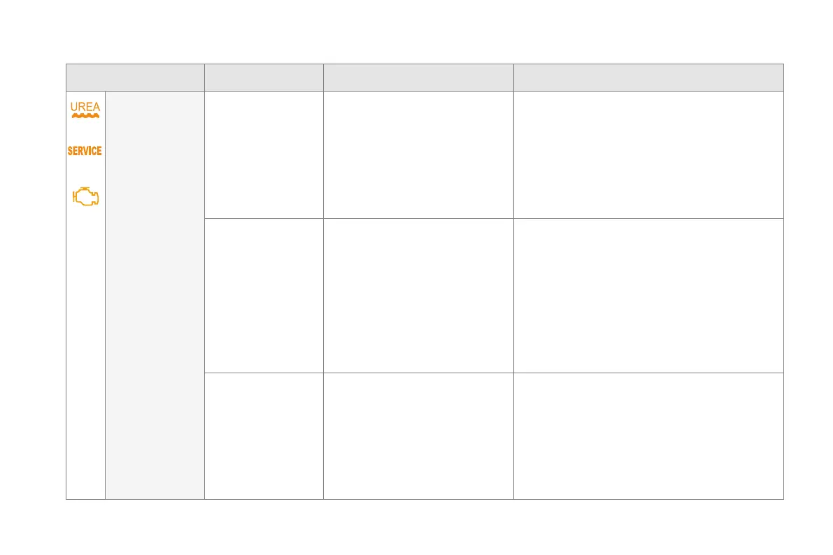 Warning / indicator lamp State Cause Action / Observations