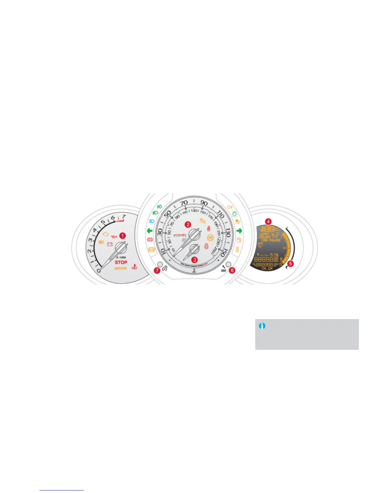 Provided with permanent back-lighting, the instrument panel groups together the vehicle's dials and indicator and warning lamps.