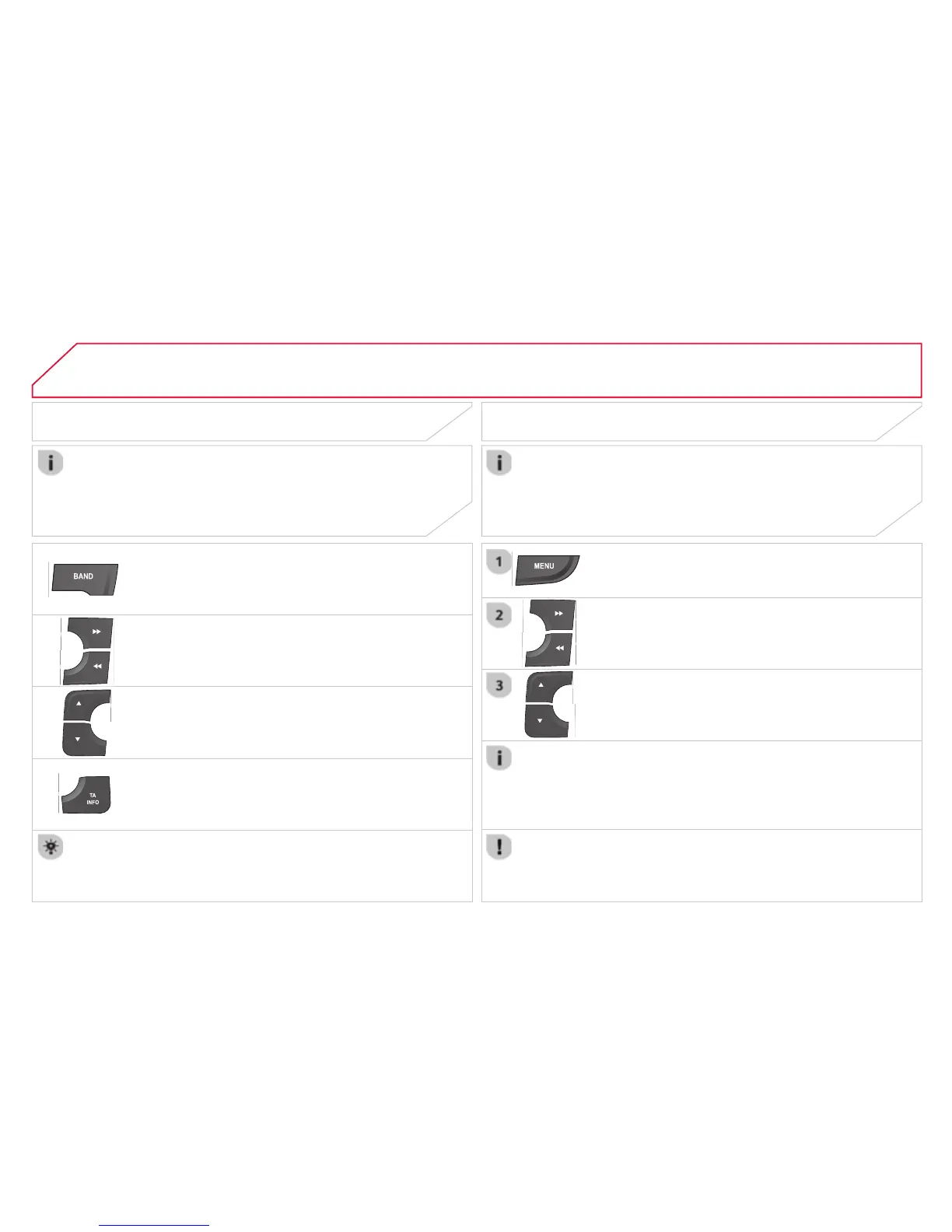 Change band (FM1, FM2, DAB, ...)
