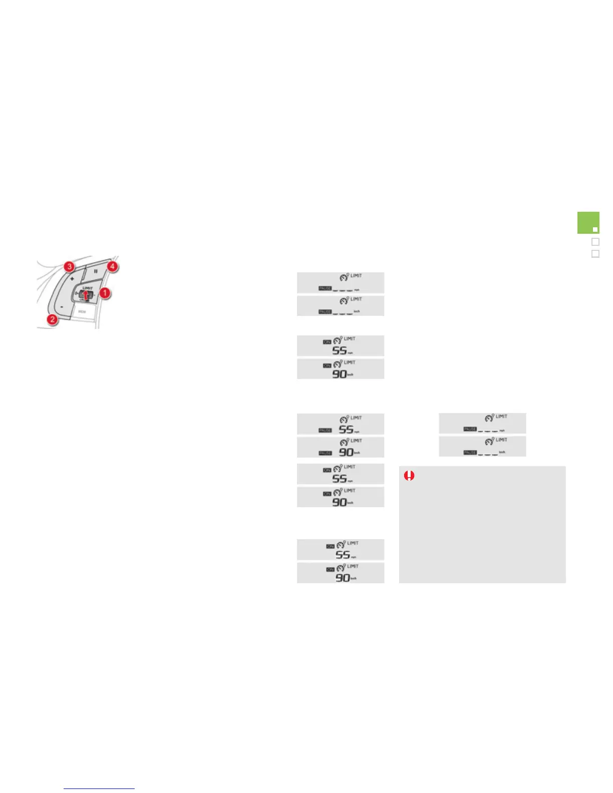 Switch the speed limiter on by pressing button 4 .