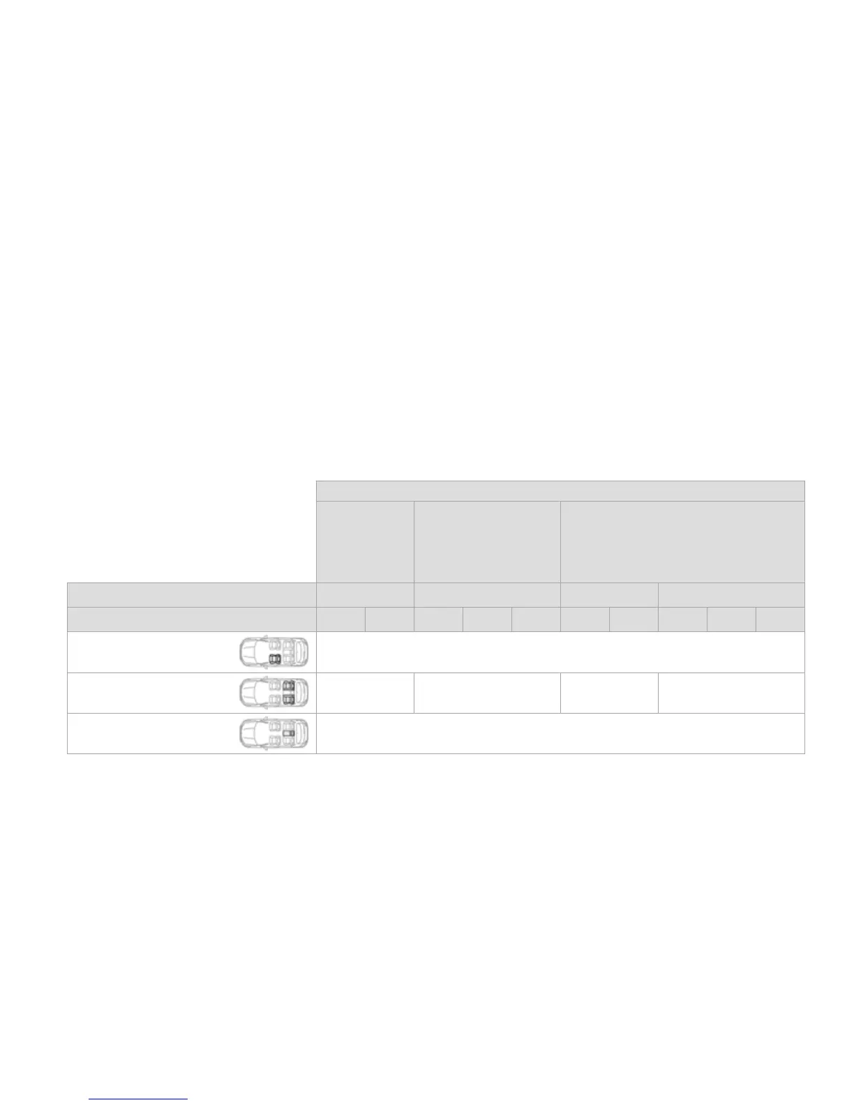 In accordance with European Regulations, this table indicates the options for installing ISOFIX child seats on seats in the vehicle fitted with ISOFIX