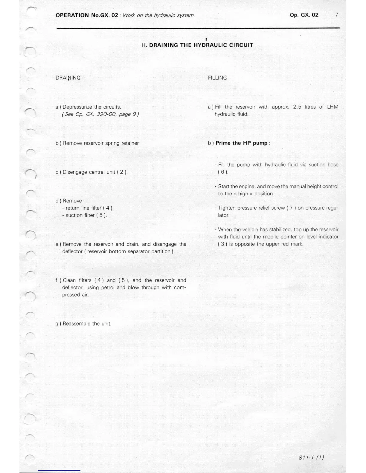 OPERATION No.GX. 02: Work on the hydraulic system.