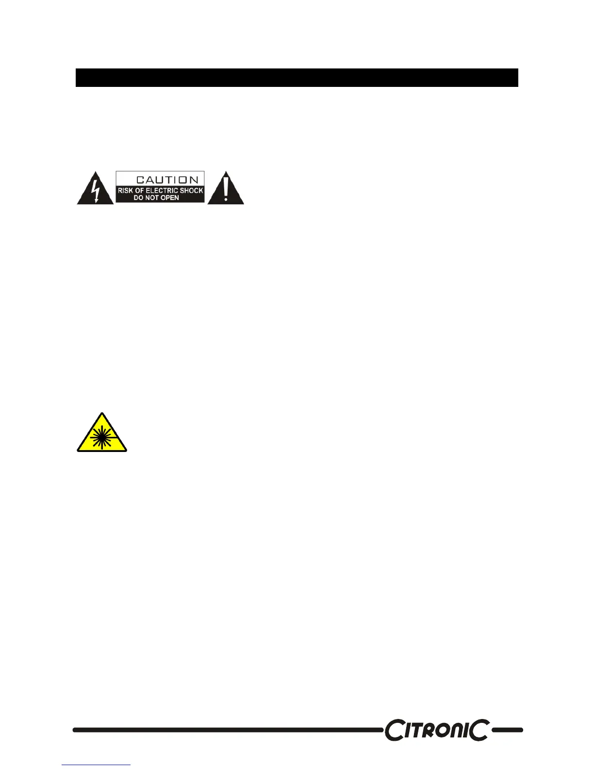 TO REDUCE THE RISK OF ELECTRIC SHOCK DO NOT REMOVE THE COVER(OR BACK). THERE ARE