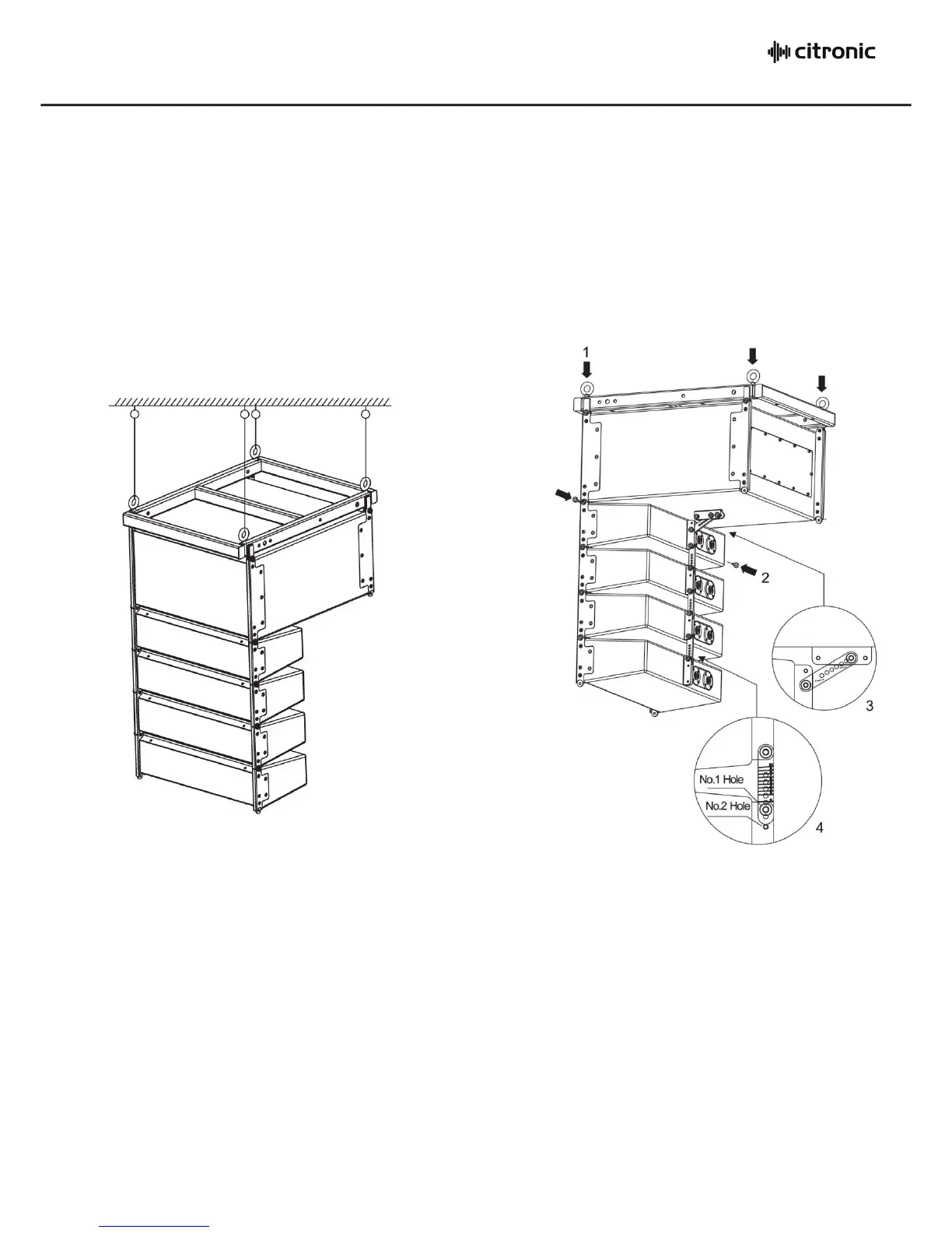 In some situations, it may be easier to suspend the sub unit first and then assemble line-array