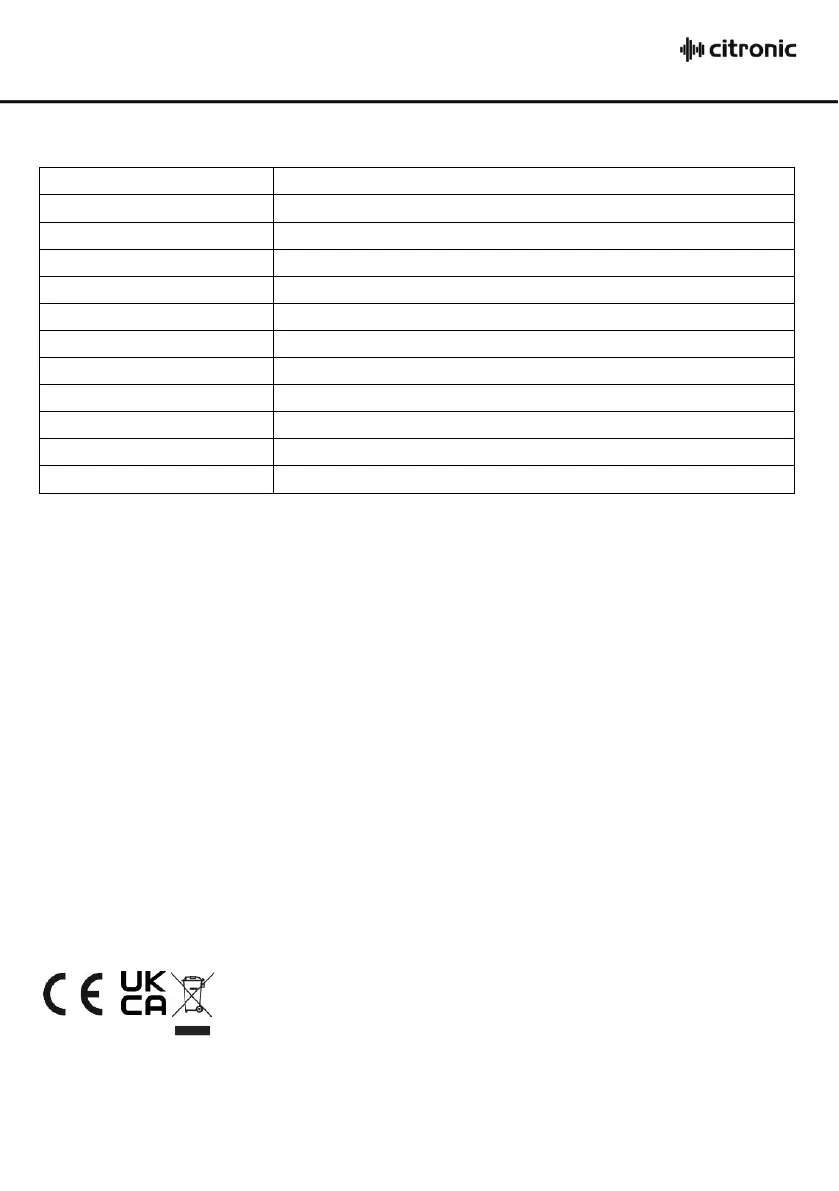 Disposal: The “Crossed Wheelie Bin” symbol on the product means that the product is classed as