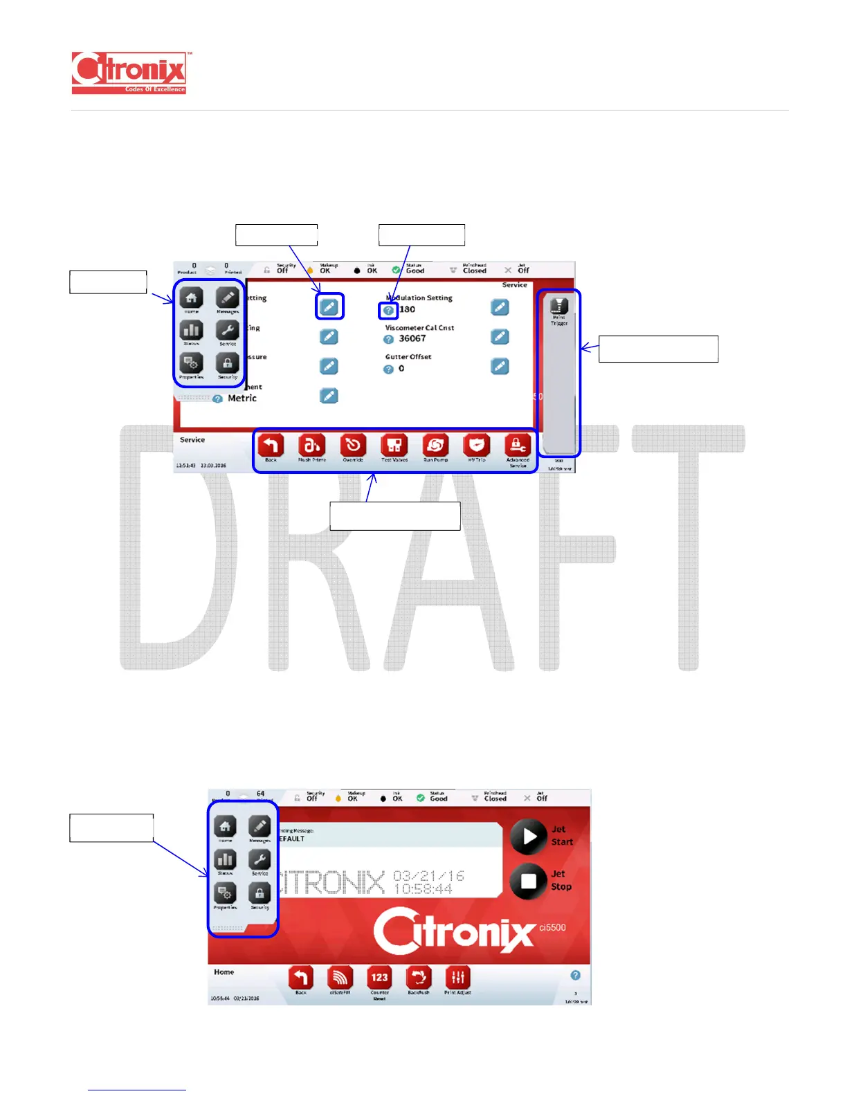 Citronix ci5200 - Graphical User Interface; Software Controls; Menus Tab