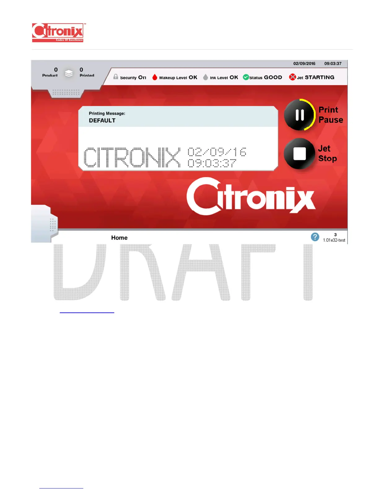 The Printer will start the Jet and display “Jet Start” in the upper right-hand corner of the screen. A yellow