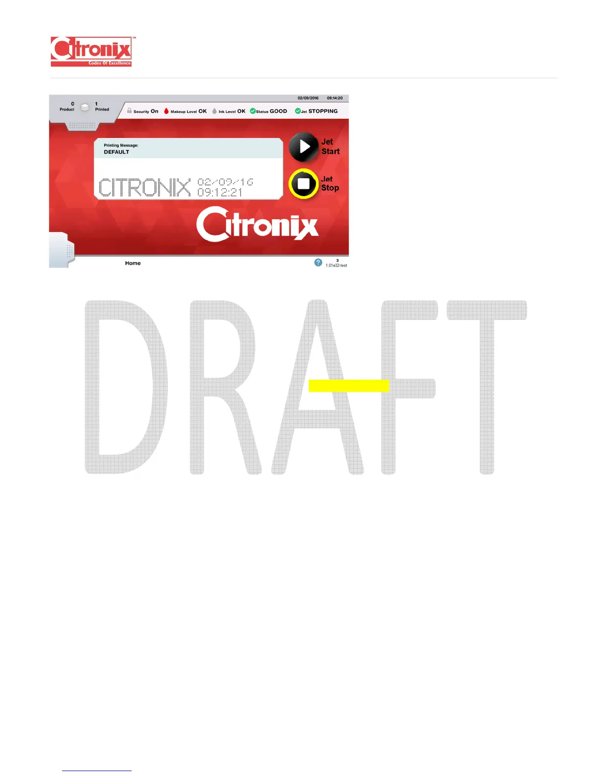 5. Start the Jet by pressing the “START” button on the main screen. This will flush the Printer of