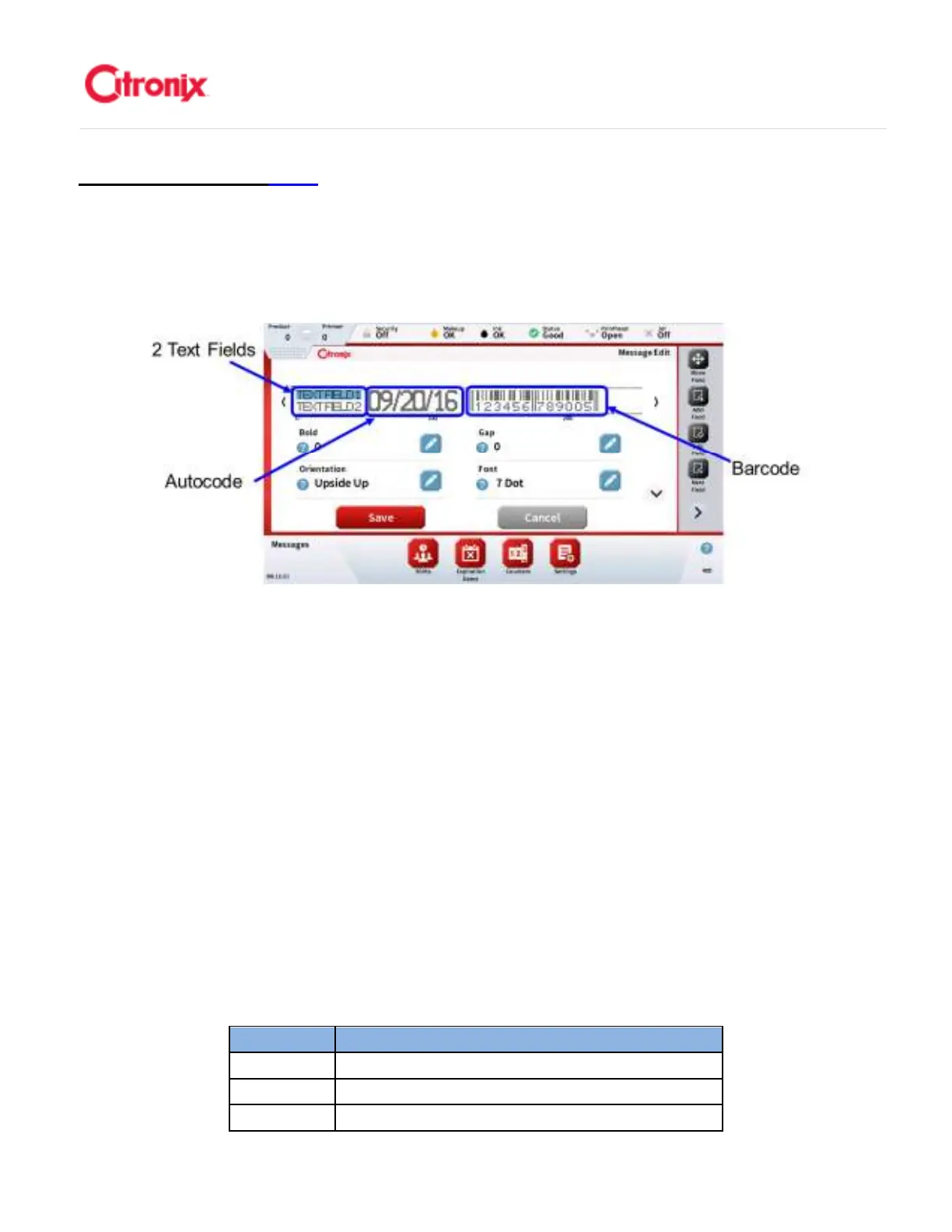 Autocodes allow Date, Time, Shift, Counter, User and Printer ID data to be inserted into a message field.