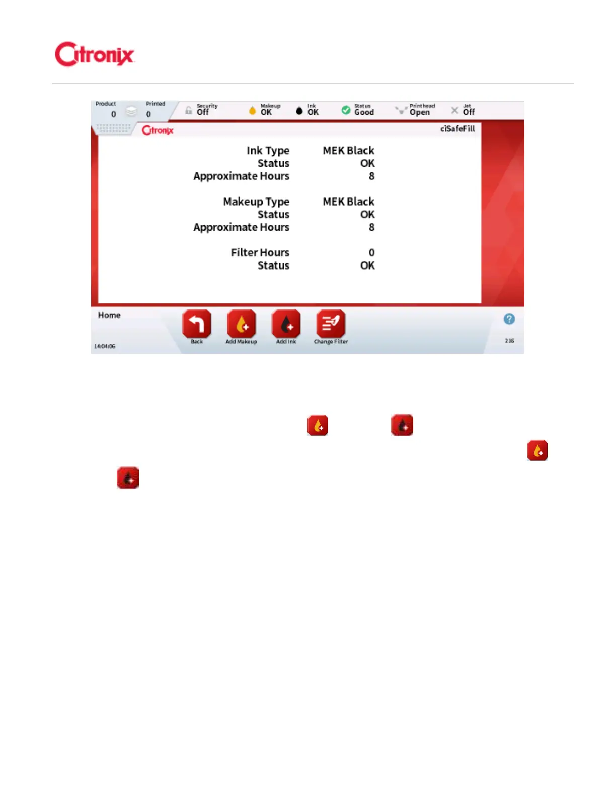 To add ink or Make-Up first press the [Add Makeup] or [Add Ink] button as appropriate. Once
