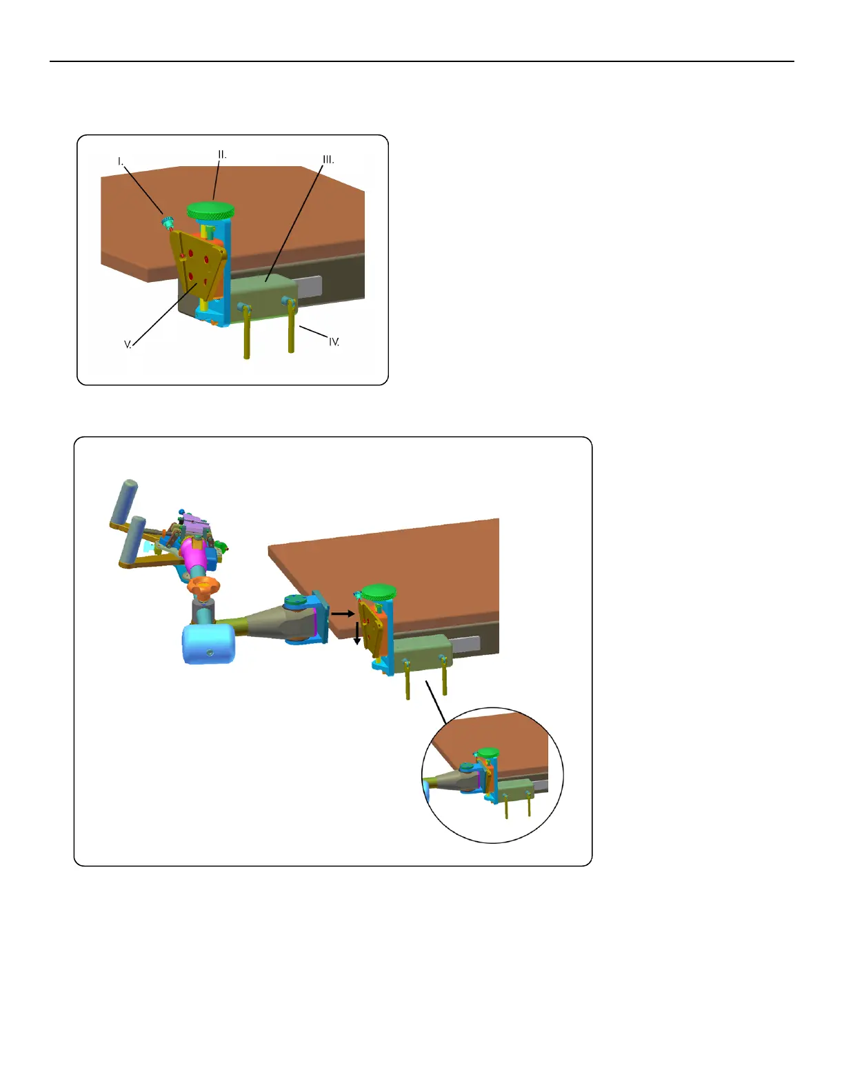 1. Разхлабете лостовете на релсовите скоби на стойката за маса преди да я отстраните от транспортната стойка. Плъзнете