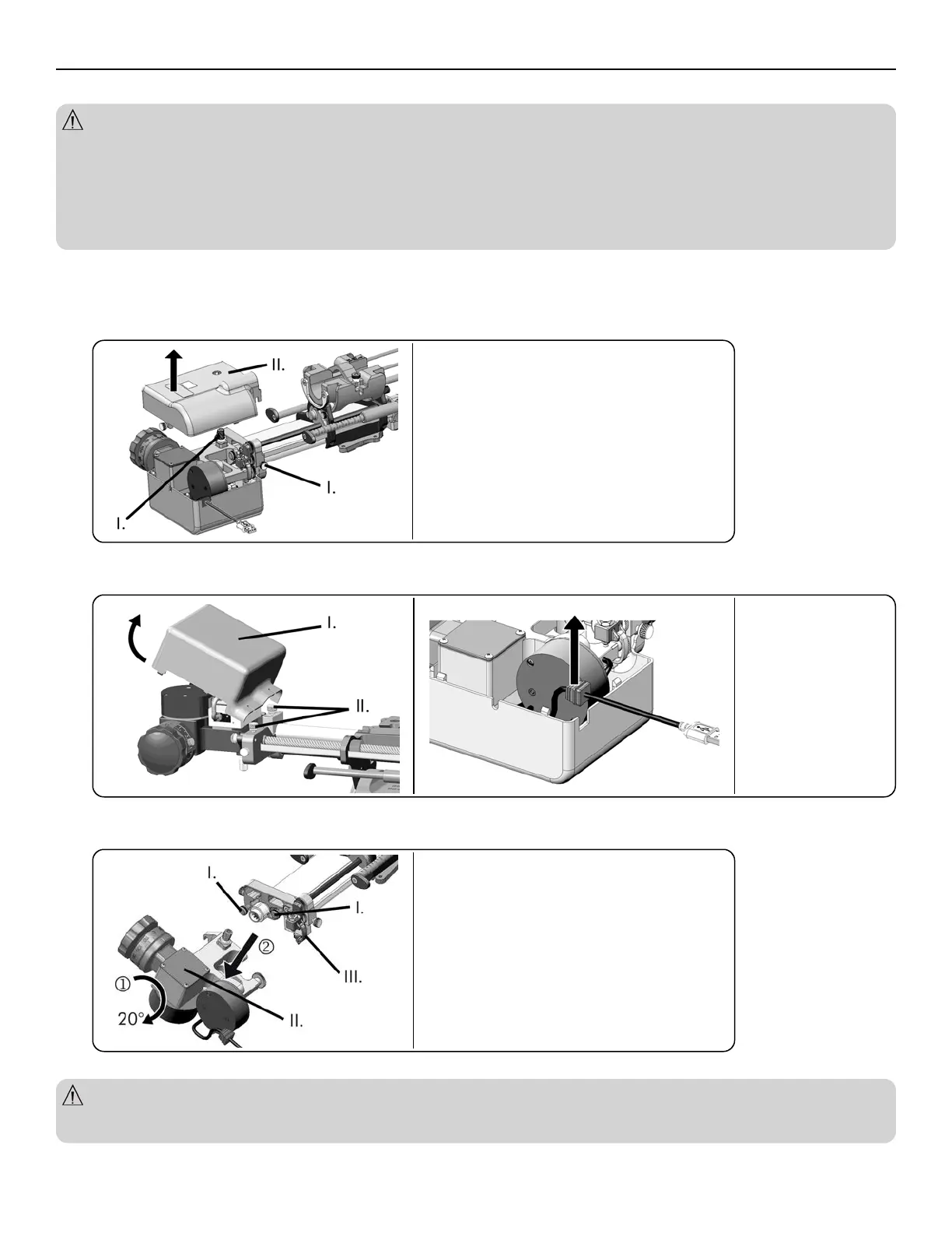 3. Pagrieziet EX3 soļu ierīci, atskrūvējiet stiprinājuma skrūves (2), pagriežot tās pretēji pulksteņrādītāju kustības virzienam, līdz var noņemt apakšējo