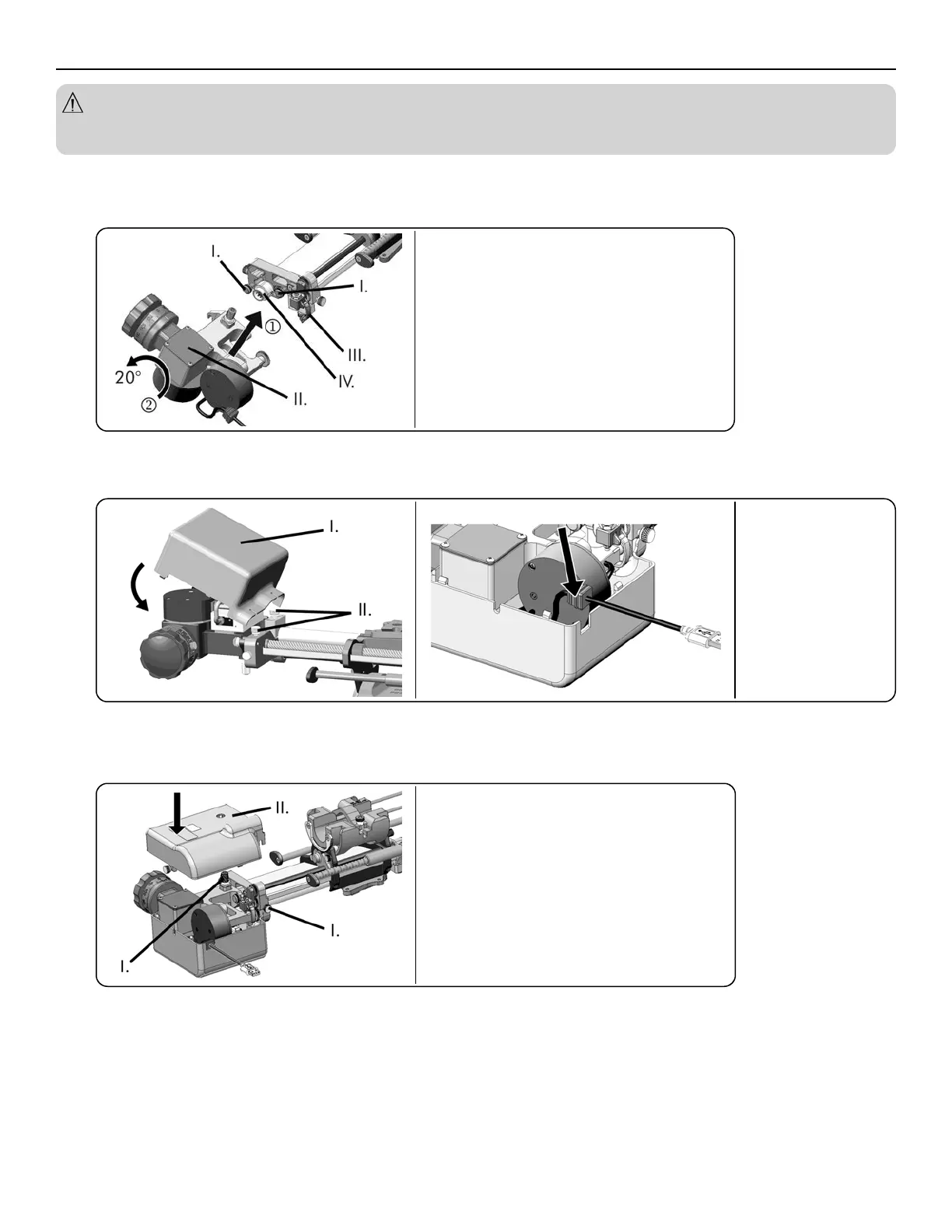3. Gire o Motor de Passo EX3, coloque a tampa inferior sobre a secção posterior e aperte os parafusos de fixação inferiores (2), girando no sentido dos