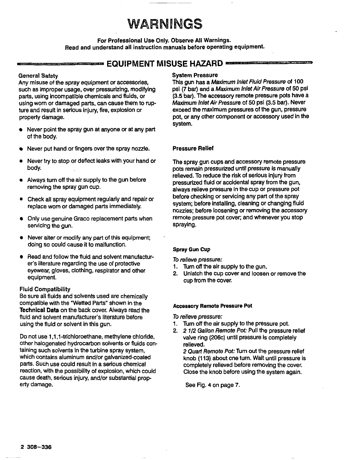 Only use genuine Graco replacement parts when remote pressure pot cover; and whenever you stop
