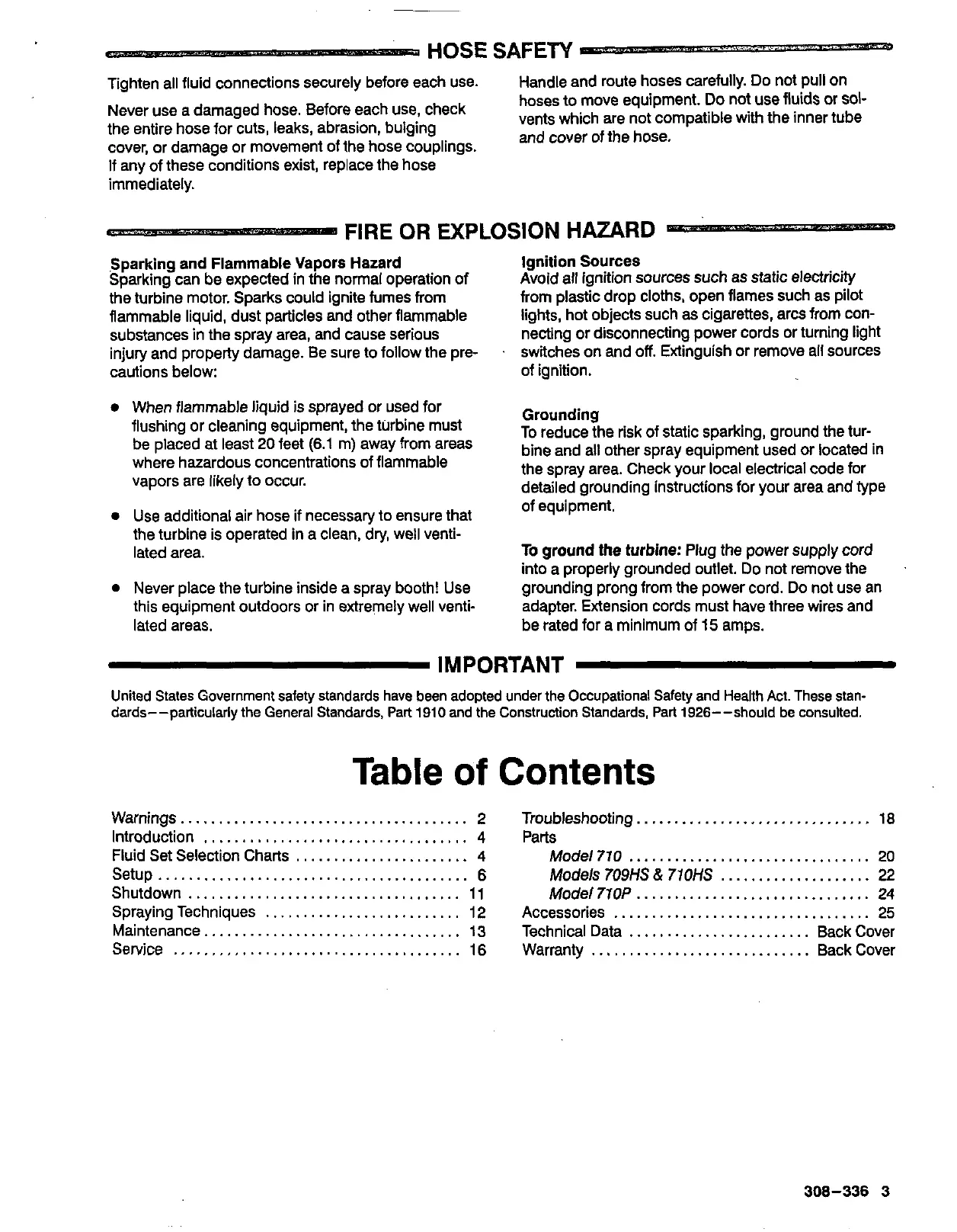 the turbine motor. Sparks could ignite fumes from from plastic drop cloths, open flames such as pilot