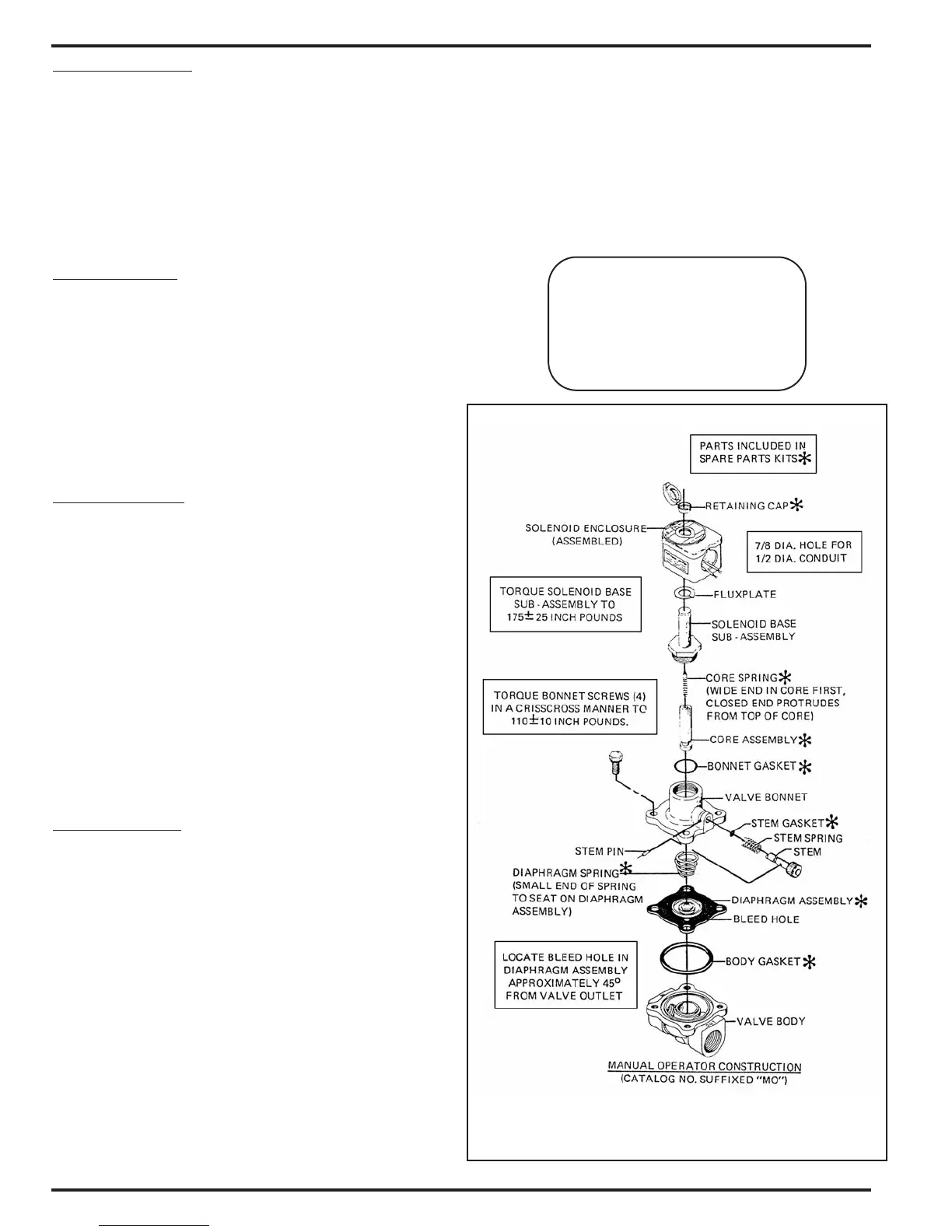 6. Replace bonnet gasket, core assembly, core spring and solenoid base