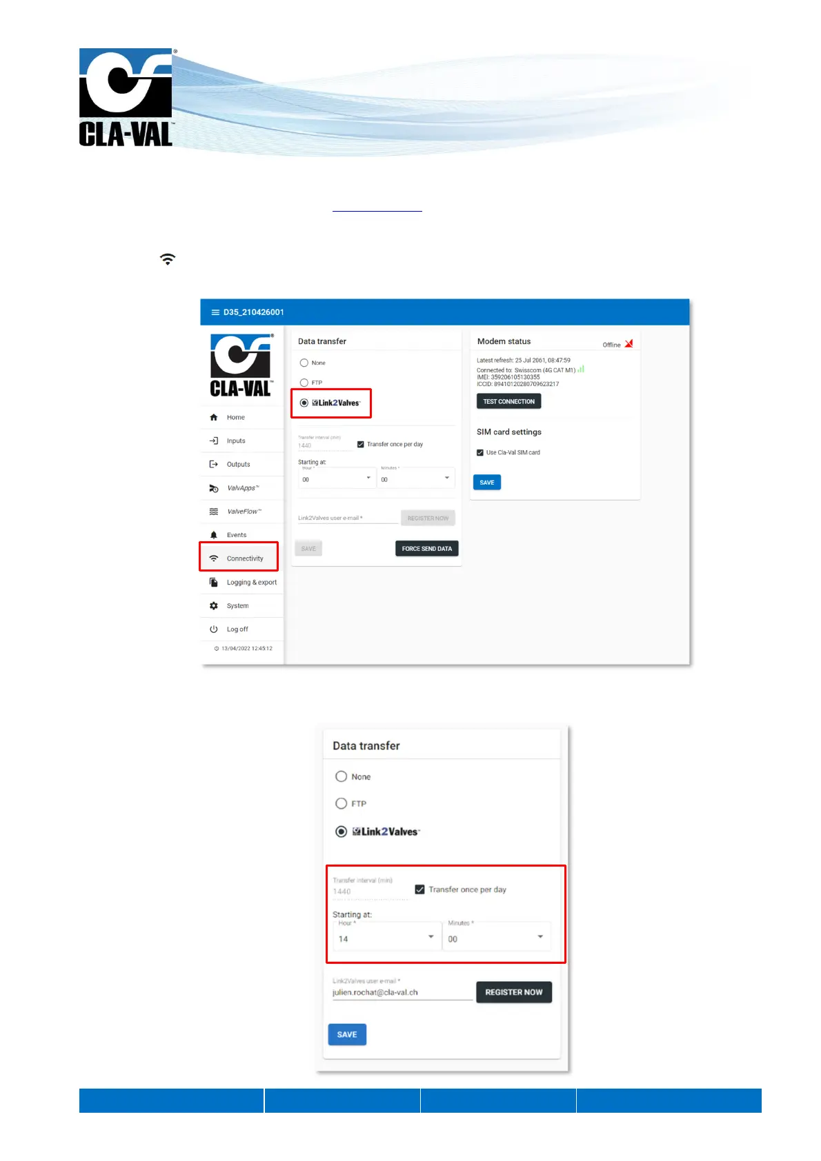 is the CLA-VAL web platform (https://cla-val.ch) that allows the remote management of your D35 as well as