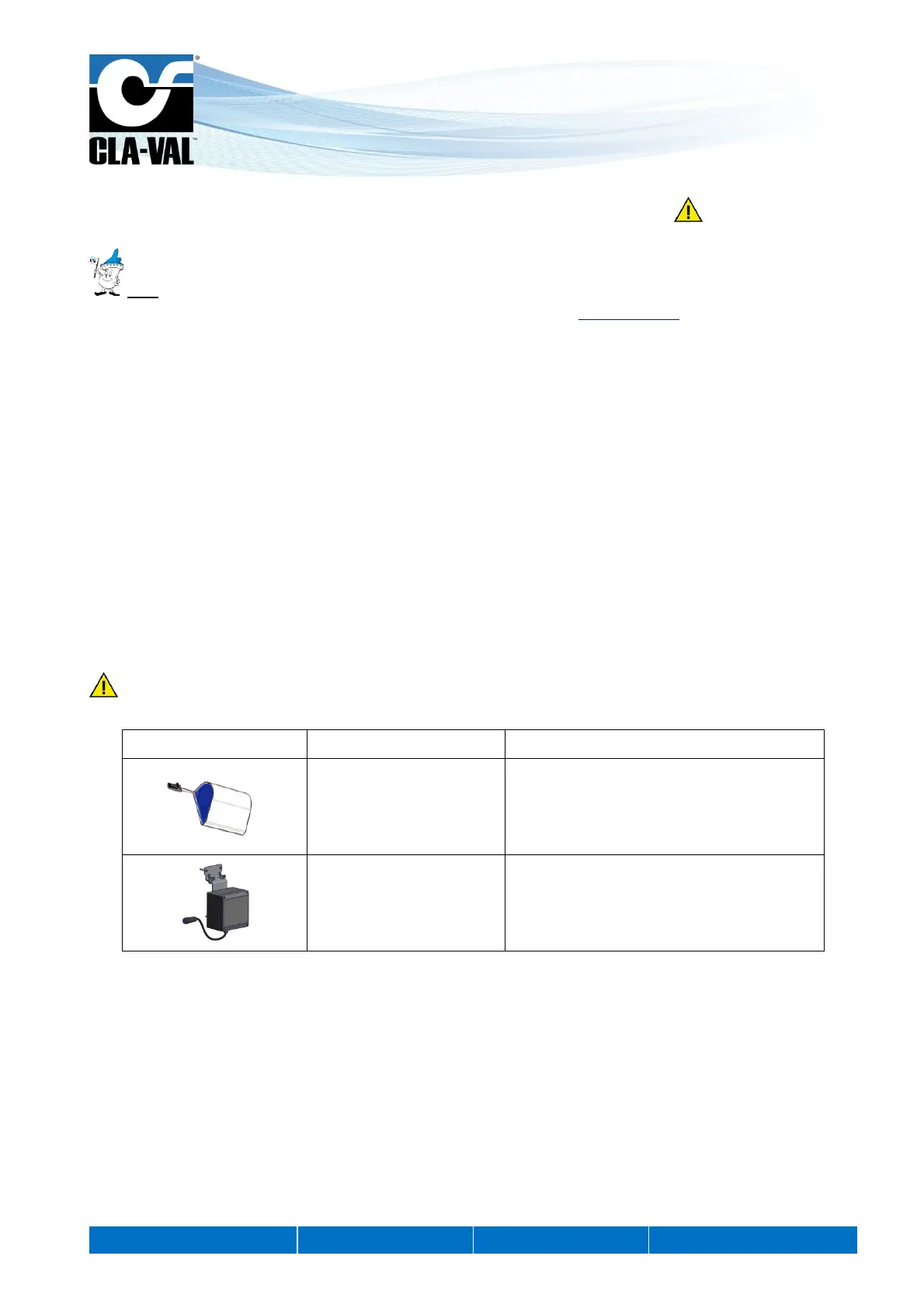 Warranty may be void if accessories other than those recommended by CLA-VAL Europe are used.