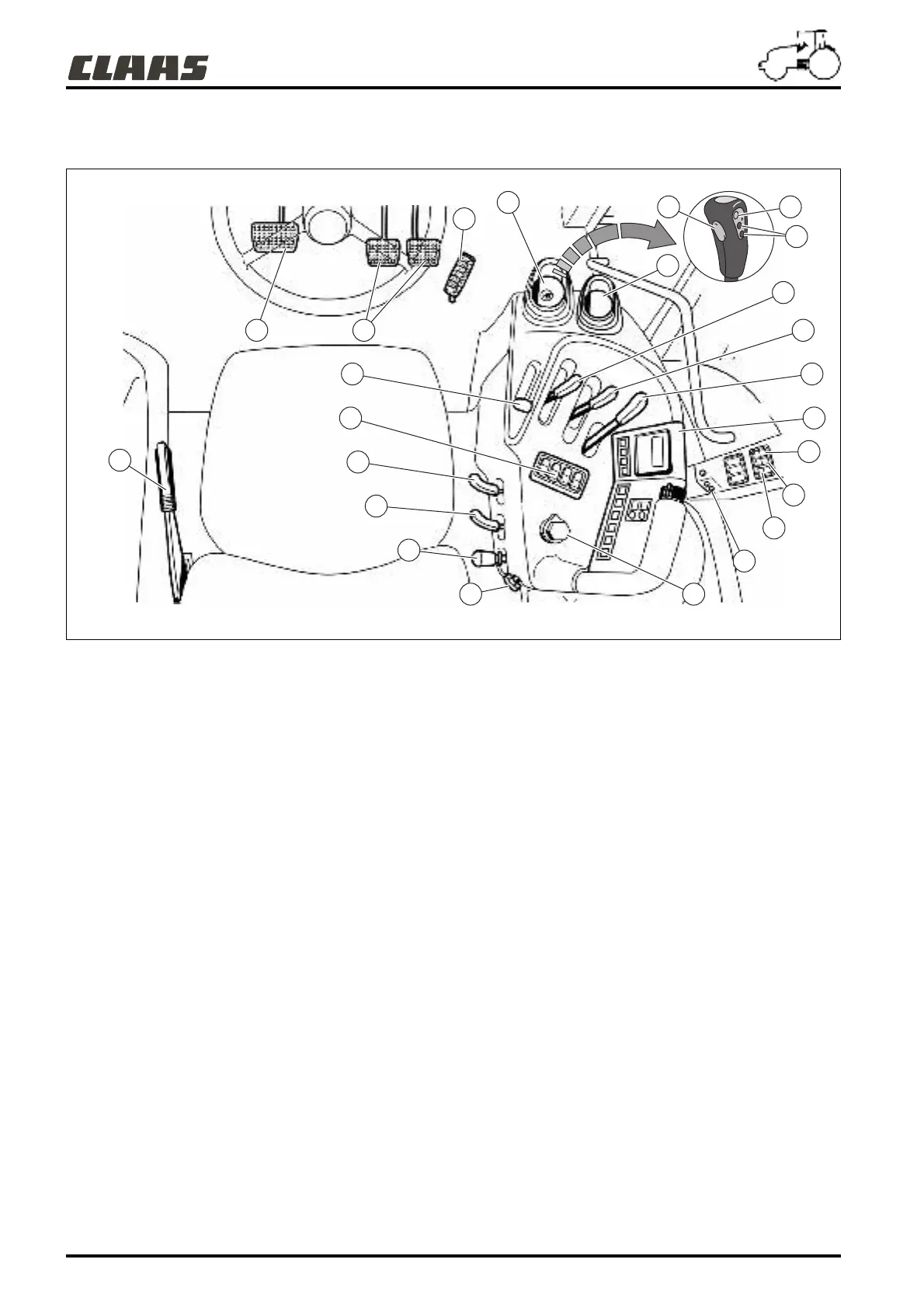 15 - Rear power take-off engagement button.