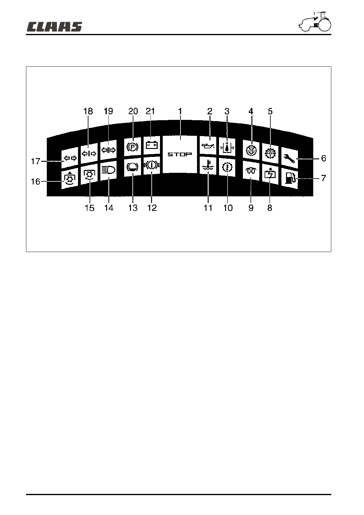16 - Front power take-off warning light.