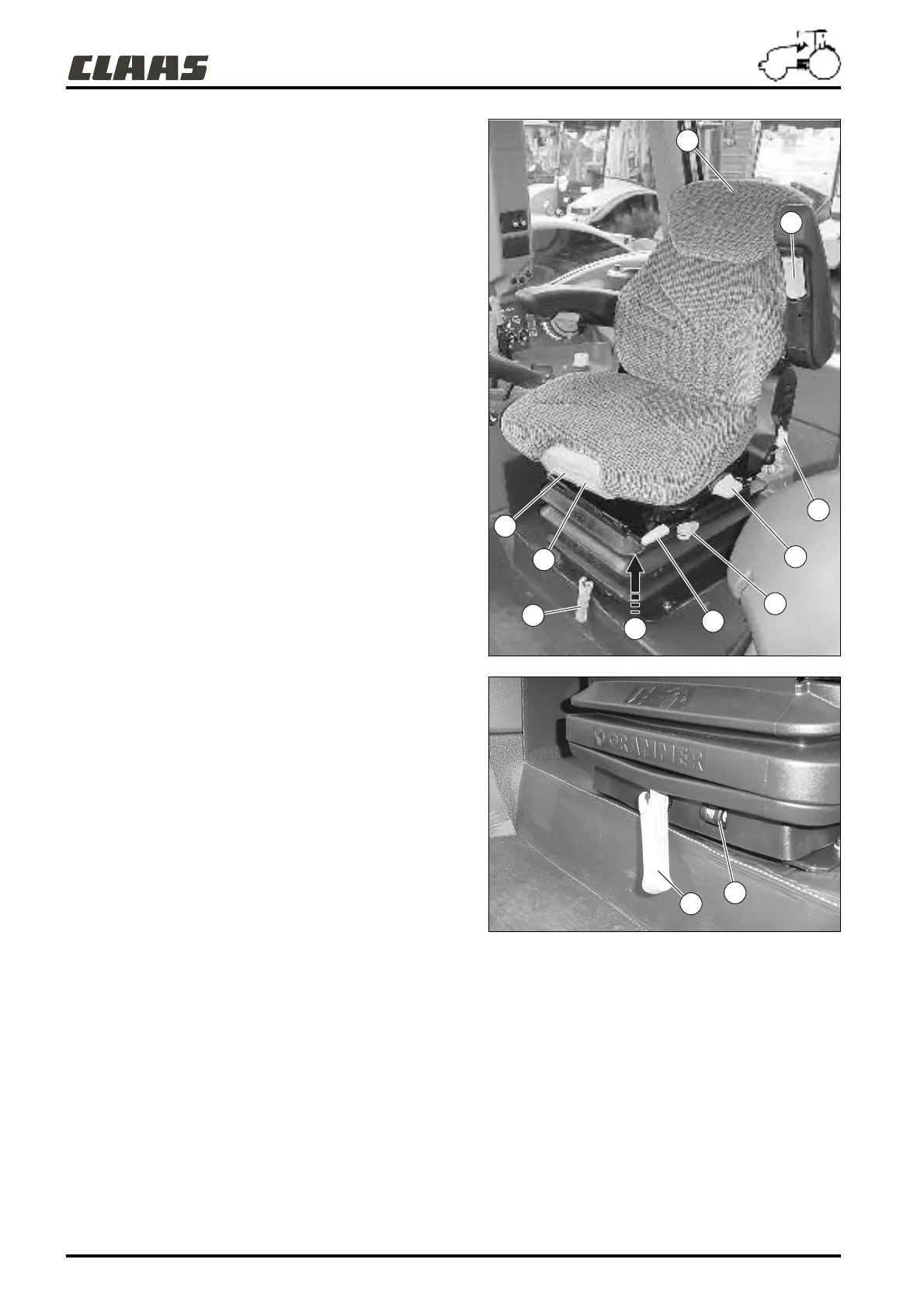 handle (9) clockwise to move the seat up, and