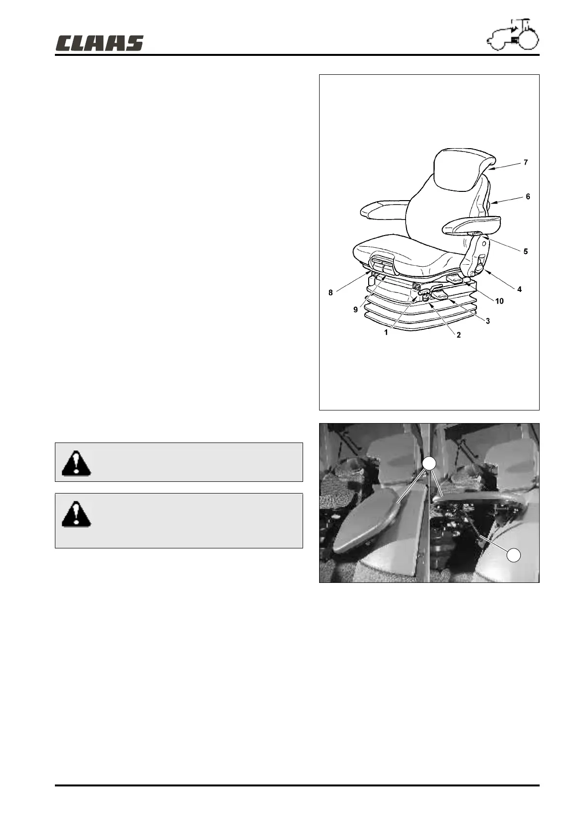 10 - Seat swivelling adjustment: Pull the handle (10) up to allow