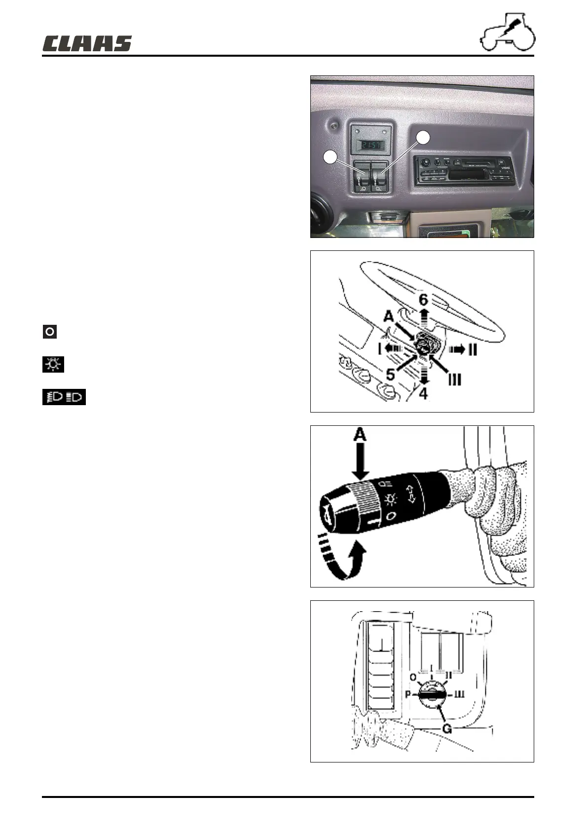 • To turn the lights on, turn the end of lever (A) anti-clockwise.