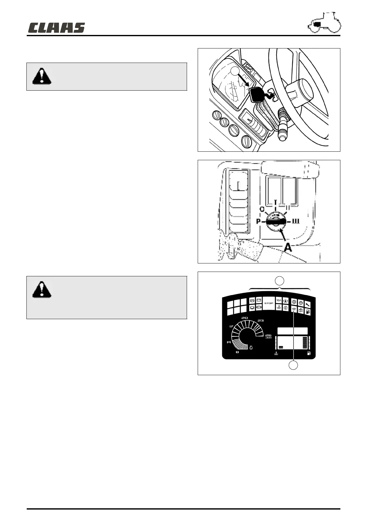 The lights (B) go off, if not consult your CLAAS approved agent.