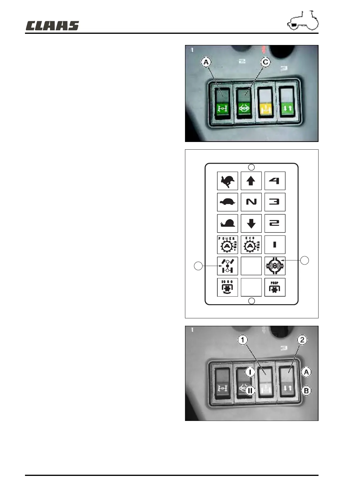 Switches (1) et (2), located in the driving position, manage the